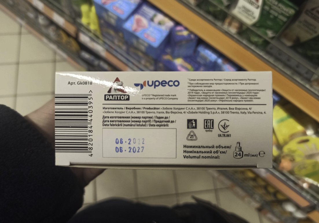 Але в Сільпо та Novus репортерка Forbes побачила Раптор, вироблений влітку 2022-го, на якому написано, що торгова марка належить Upeco. Хоча сам продукт і був виготовлений в Італії.