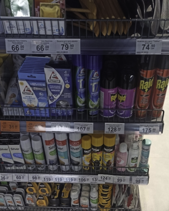 Ще деякі марки з російським слідом є в Сільпо та Novus. Це засоби від комах Раптор та косметика для взуття Salton. Ці бренди в кінці 1990-х заснували власники російської компанії Upeco Володимир Чекурда та Олексій Белевцев, писав російський Коммерсантъ. До повномасштабного вторгнення ці торгові марки були присутні більше ніж у 10 країнах.