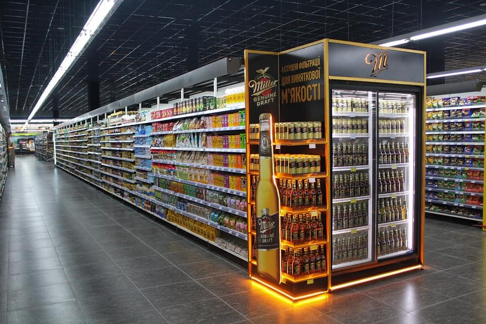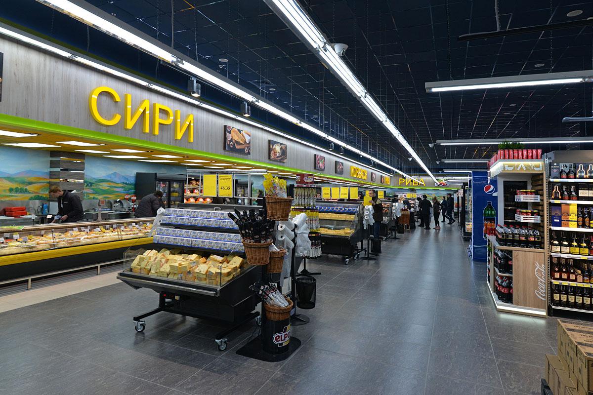 Асортимент магазину включає в себе велику продуктову групу: як швидкопсувні товари, так і продукти тривалого зберігання.