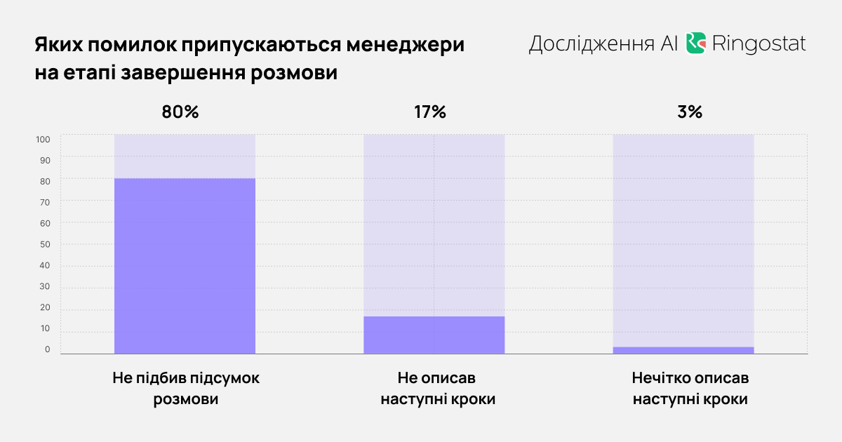 - в 17% випадків менеджери не озвучували наступні кроки, які мають зробити вони або клієнти;