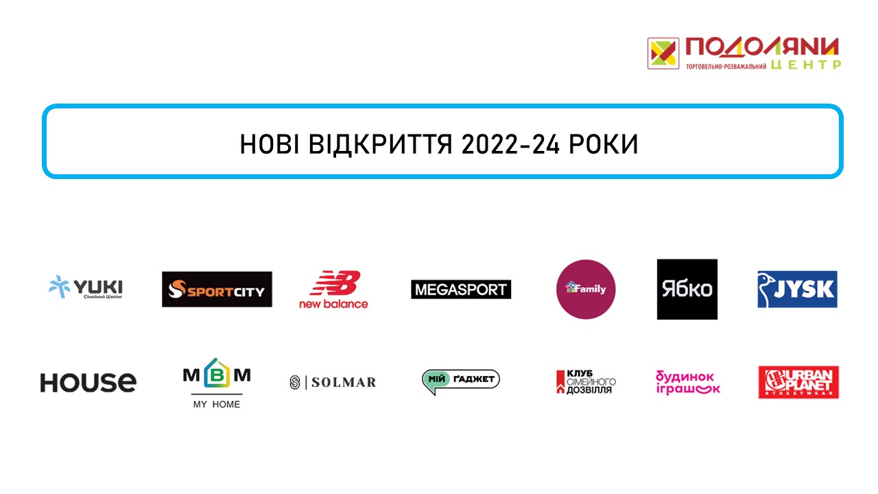 За 2022-24 роки відкрилося чимало нових магазинів. Перш за все було посилено спортивну складову за рахунок таких брендів як Sport City, New Balance, Megasport. Так само вперше був представлений сегмент товарів для дому магазином Jysk в найновішому форматі 4.0 та магазинами MBM my home і Family. Варто також відзначити магазин для сімейного шопінгу Yuki, який дуже успішно працює.