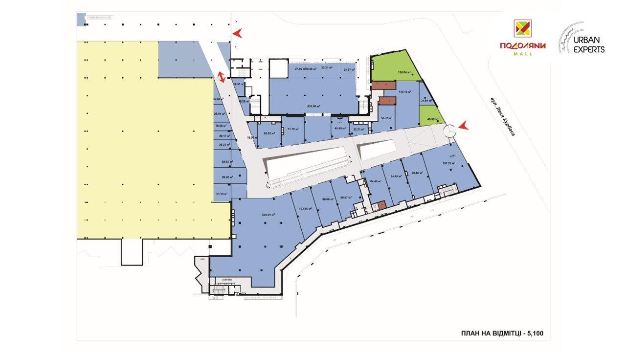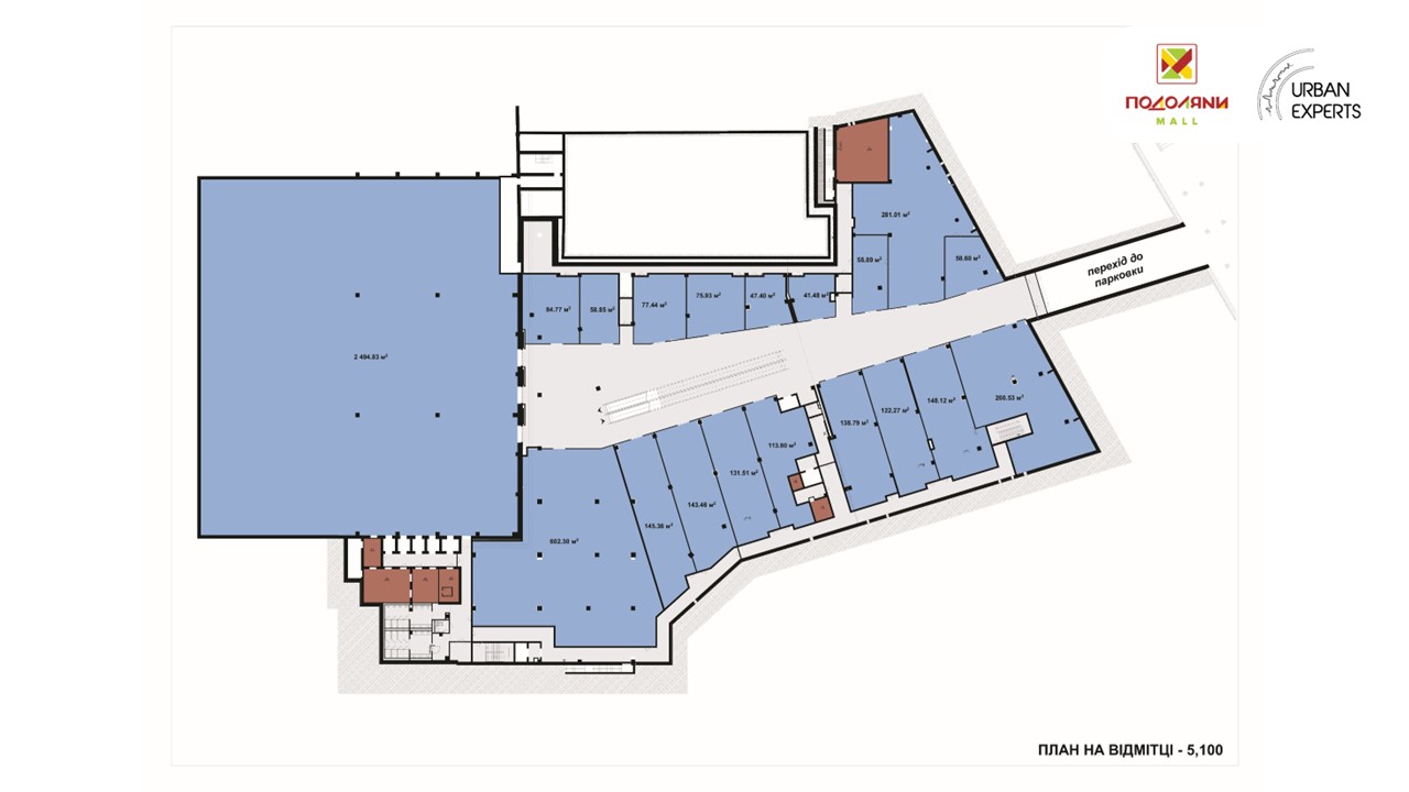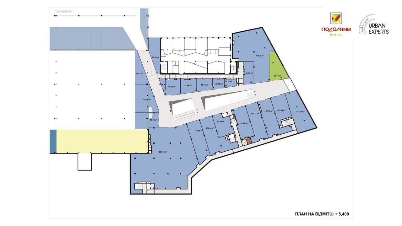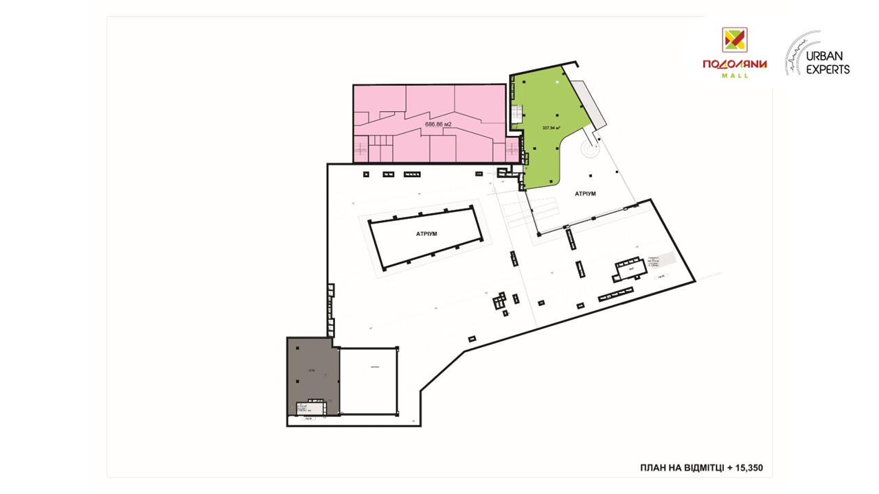 Мінус перший поверх з’єднаний з парковкою та матиме сучасне укриття, яке відповідає усім нормативам безпеки. Перший поверх з’єднаний з діючою частиною ТРЦ.