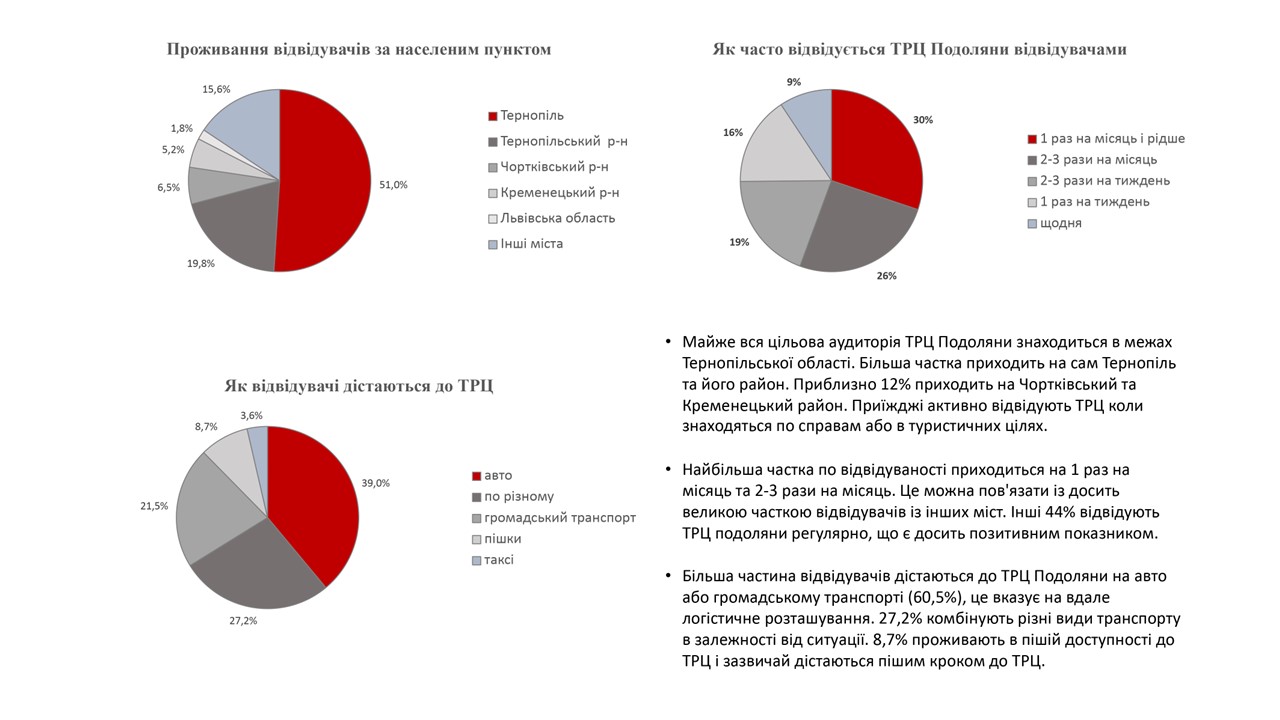 Основна цільова аудиторія ТРЦ – жителі Тернополя та області. Приблизно 40% відвідувачів становлять мешканці області, а ще близько 20% – це приїжджі з інших міст, які знаходяться в Тернополі у справах чи в туристичних цілях. Приблизно 2% приїздять зі Львівської області.