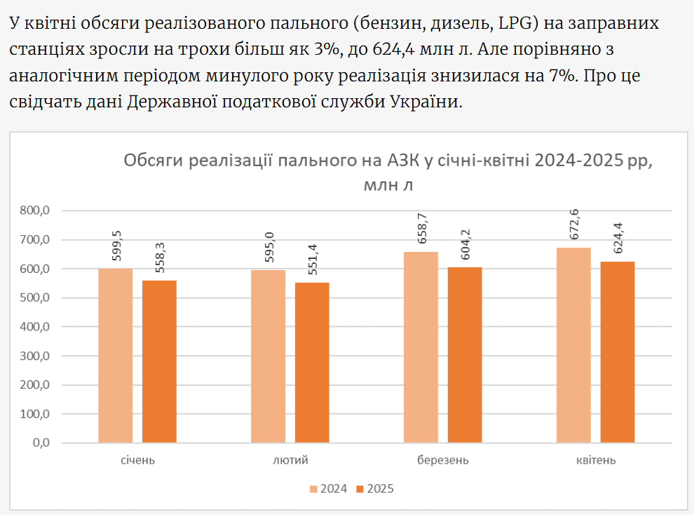 У цьому році падіння обсягів ринку АЗС продовжилося — на 7% проти 2024-го: