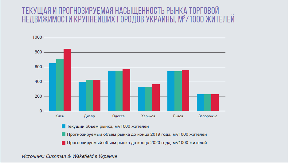За оцінками компанії UTG, станом на середину 2019 року в місті спостерігався дефіцит торговельних приміщень у обсязі 20 735 кв. м. «У разі реалізації та запуску в експлуатацію заявлених перспективних проектів на ринку може утворитися профіцит, що спричинить переміщення орендарів з морально застарілих і втрачаючих популярність об’єктів, а також вплине на зростання вакантності і корекцію ставок оренди в бік зниження», – дає прогнози Оксана Гаврилевич, провідний аналітик UTG.