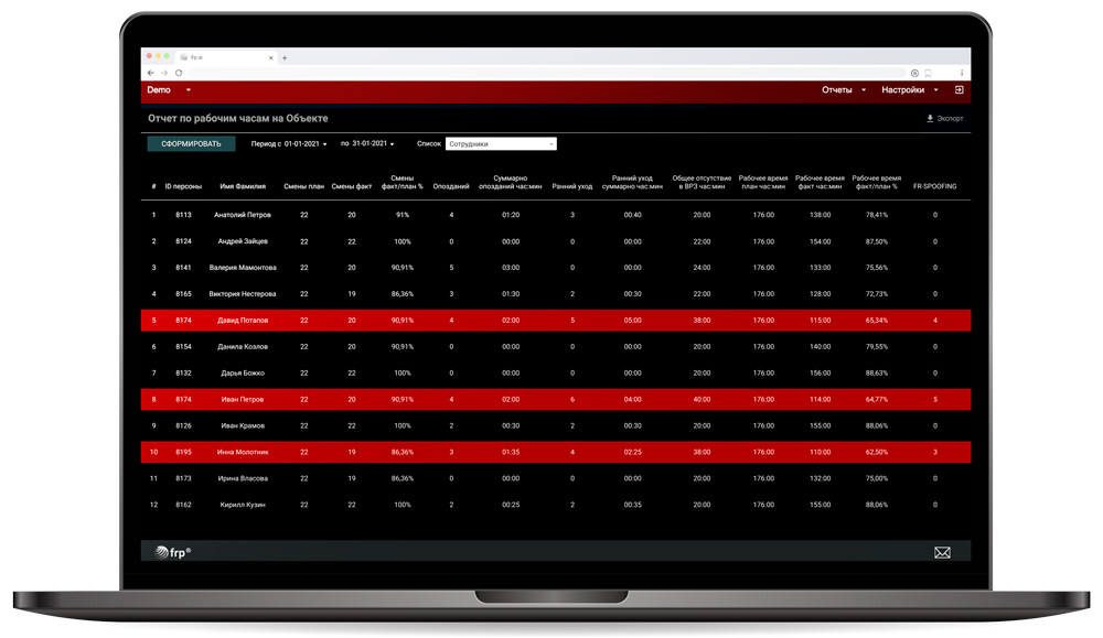 У випадку з frp®acs, система ідентифікує безпосередньо співробітника, що кардинально ускладнює “фальсифікацію присутності”.