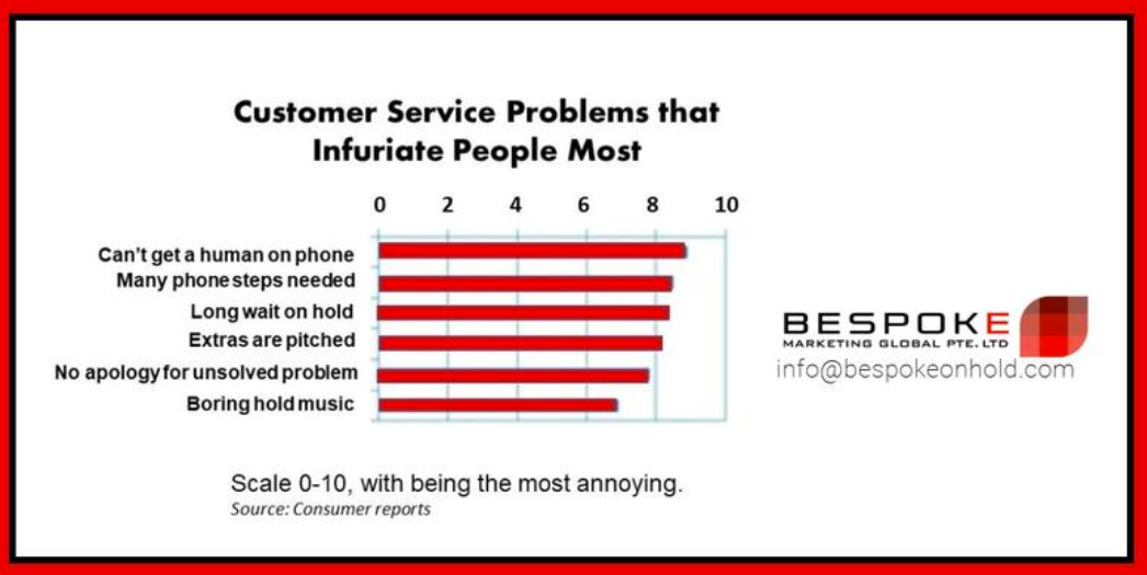 - Довге очікування = втрата частини клієнтів. На скріні нижче видно, що саме ця причина входить в топ-3 проблем, які найбільше розлючують покупців. Протягом опитування від Replicant 44% респондентів заявили, що їх дратує або злить очікування від 5 хвилин. Розчаровані клієнти з більшою ймовірністю звертаються до інших компаній.