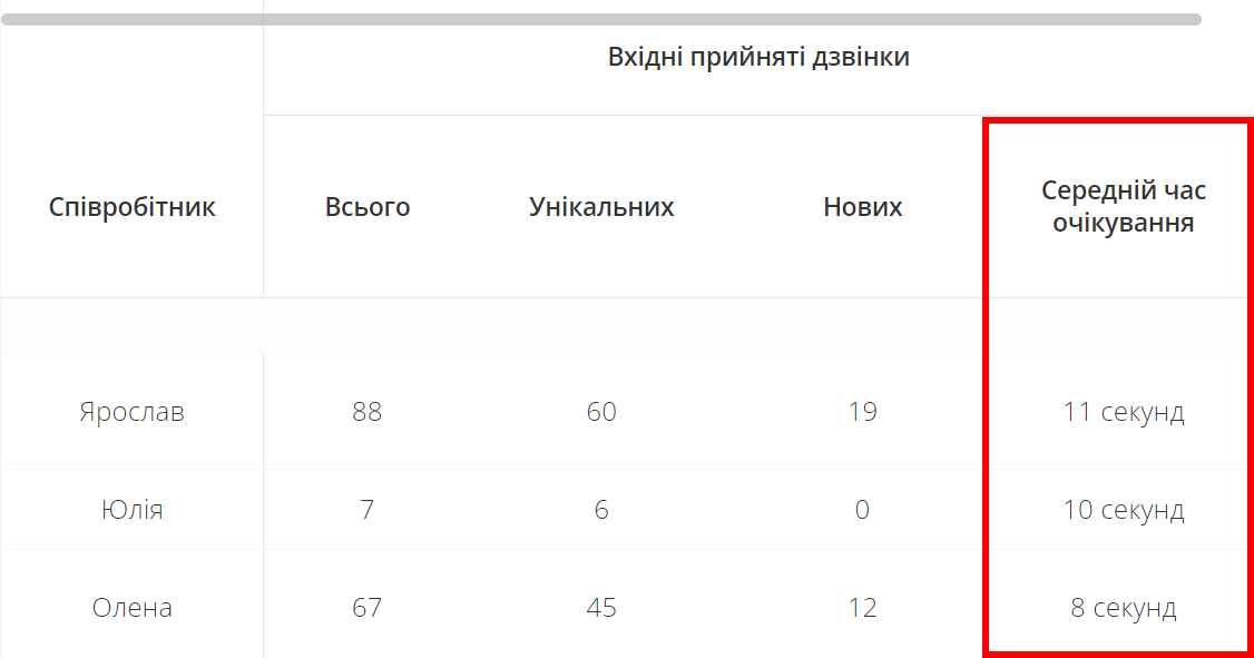 Ще варіант — подивитися звіт з ефективності працівників, якщо його надає ваша віртуальна телефонія. В такому звіті має бути видно, скільки кожен з операторів в середньому тримає клієнтів на лінії.