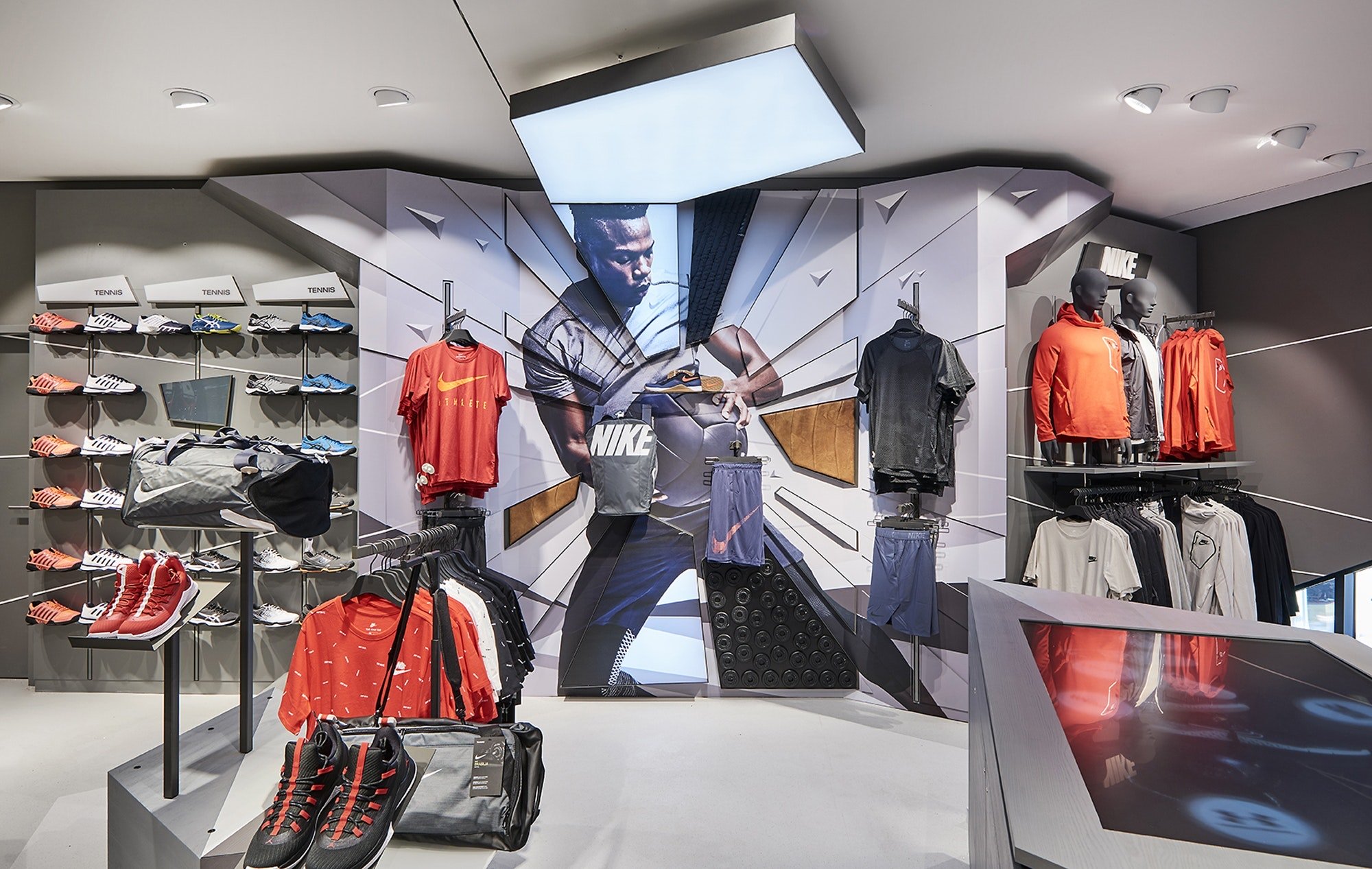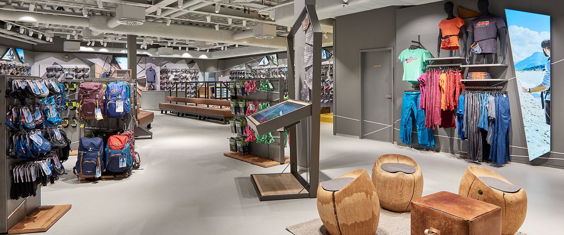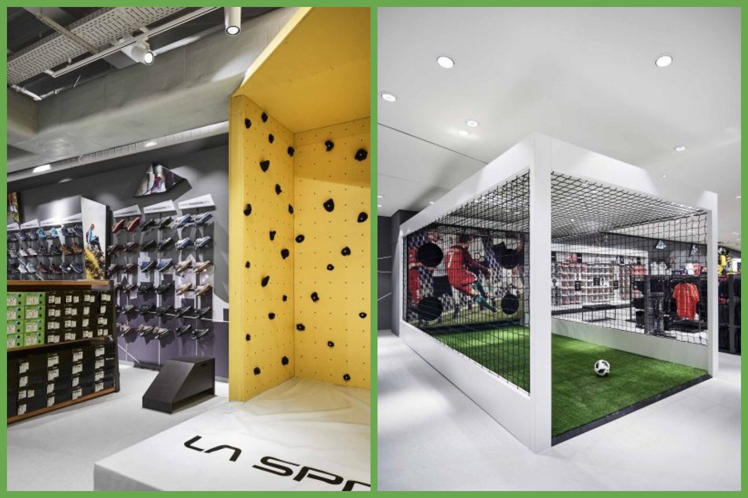 Навколо атріуму з видом на басейн за тематичним принципом розташовані секції спорттоварів, одягу і взуття. Так, на першому поверсі покупці можуть знайти все для відпочинку на морі та пляжі, включаючи дошки для серфінгу, а також екіпірування для зимових видів спорту – лижі, ковзани, сноуборди і т.д.