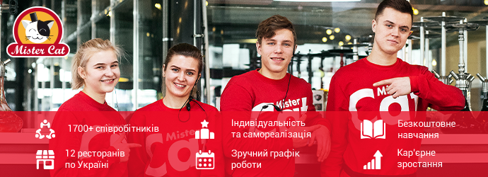 Мережа піцерій Mister Cat налічує 12 ресторанів, де 10 закладів розташовані в Києві, і по одному ресторану в Одесі і Дніпрі, а також є своя цілодобова служба доставки їжі.