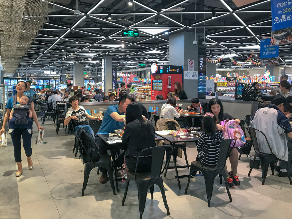 У 2016 році Alibaba вийшла в офлайн і почала відкривати мережу супермаркетів Hema Fresh, концепція якої полягає у поєднанні високотехнологічного цілодобового супермаркету, ринку свіжих продуктів, ресторану та складу з онлайн-доставкою товарів додому.