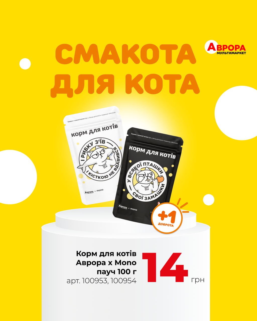 Мережа Аврора та monobank об’єдналися, щоб зробити щось особливе. Новинка, від якої замуркочуть всі пухнастики — корм для котів. Придбати корм можна ексклюзивно в мережі мультимаркетів Аврора.