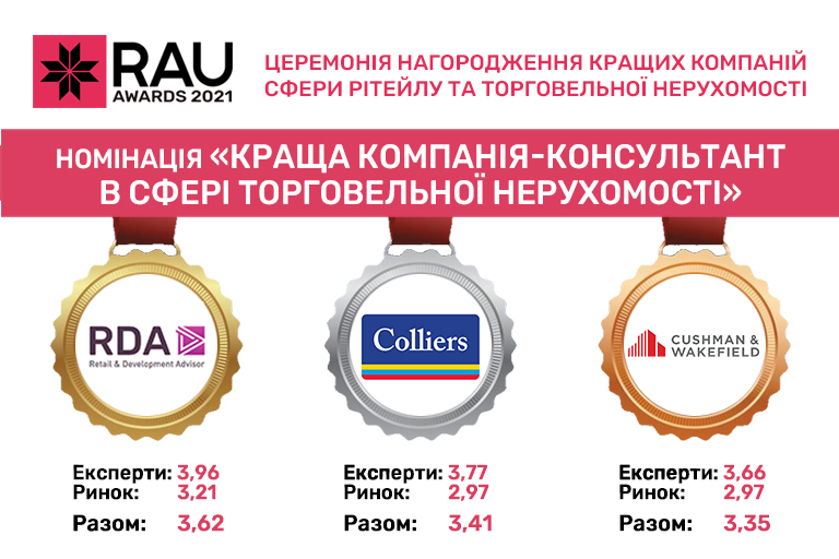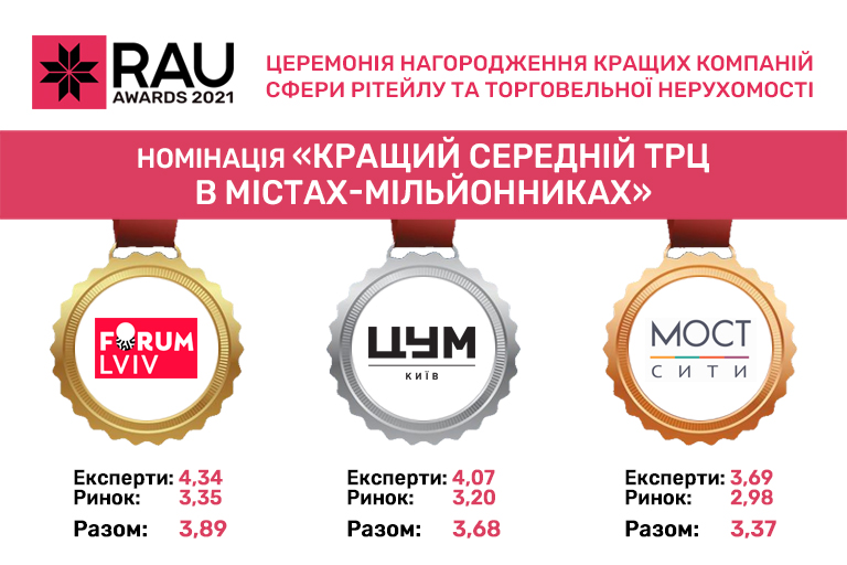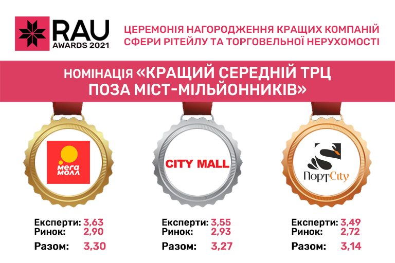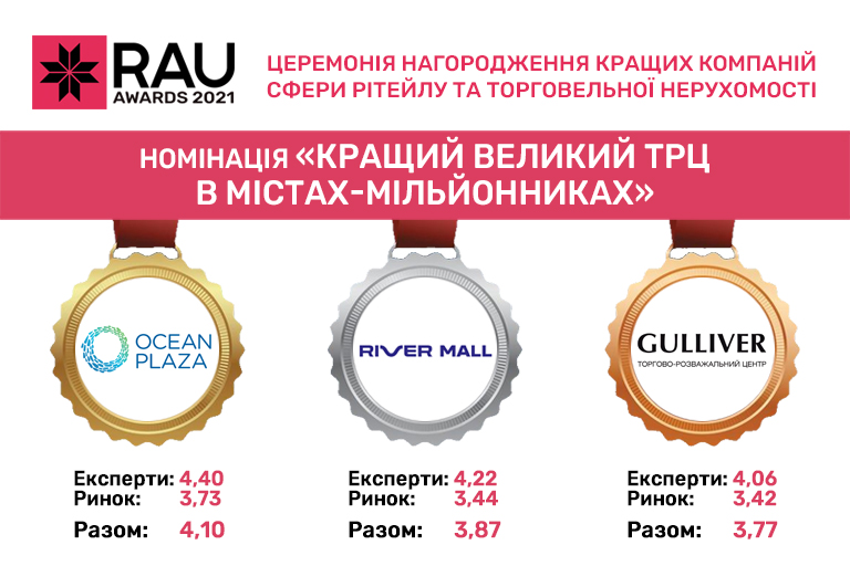 Повний список і оцінки всіх торгово-розважальних центрів, які брали участь в конкурсі “Кращий ТРЦ” в рамках RAU Awards-2021.