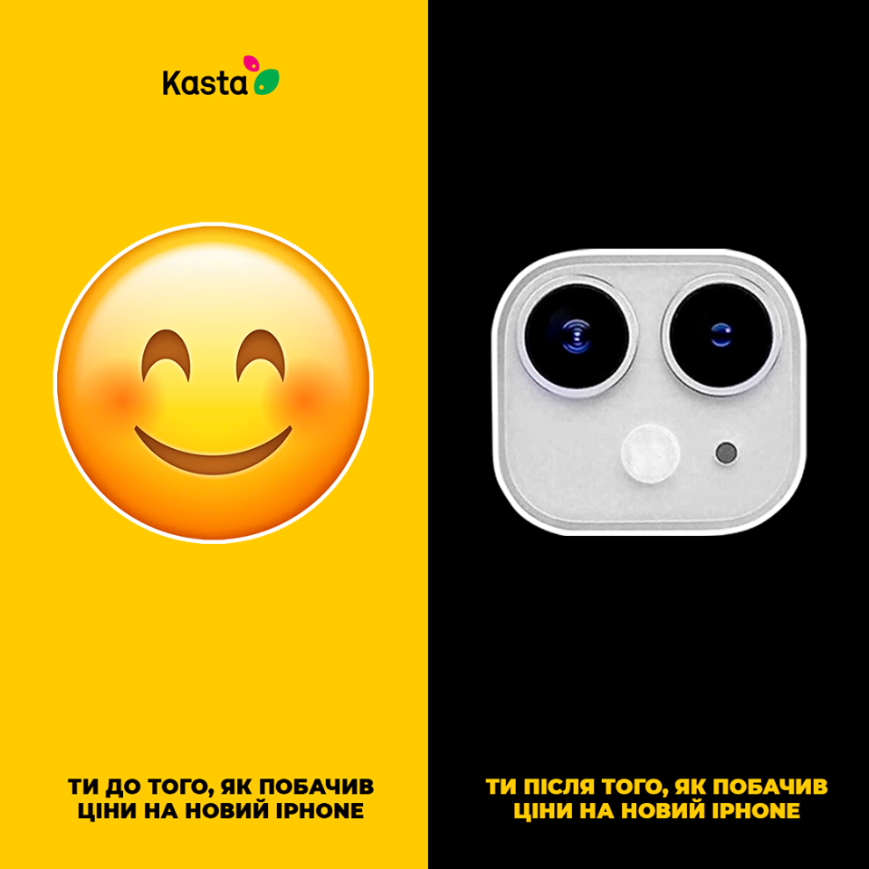 iPhone 11 ще навіть не вийшов, а вже став одним з головних персонажів для нескінченних мемів. Для рітейлерів тема теж виявилась на часі. Kasta, наприклад, цілий діалог між гаджетами влаштувала: