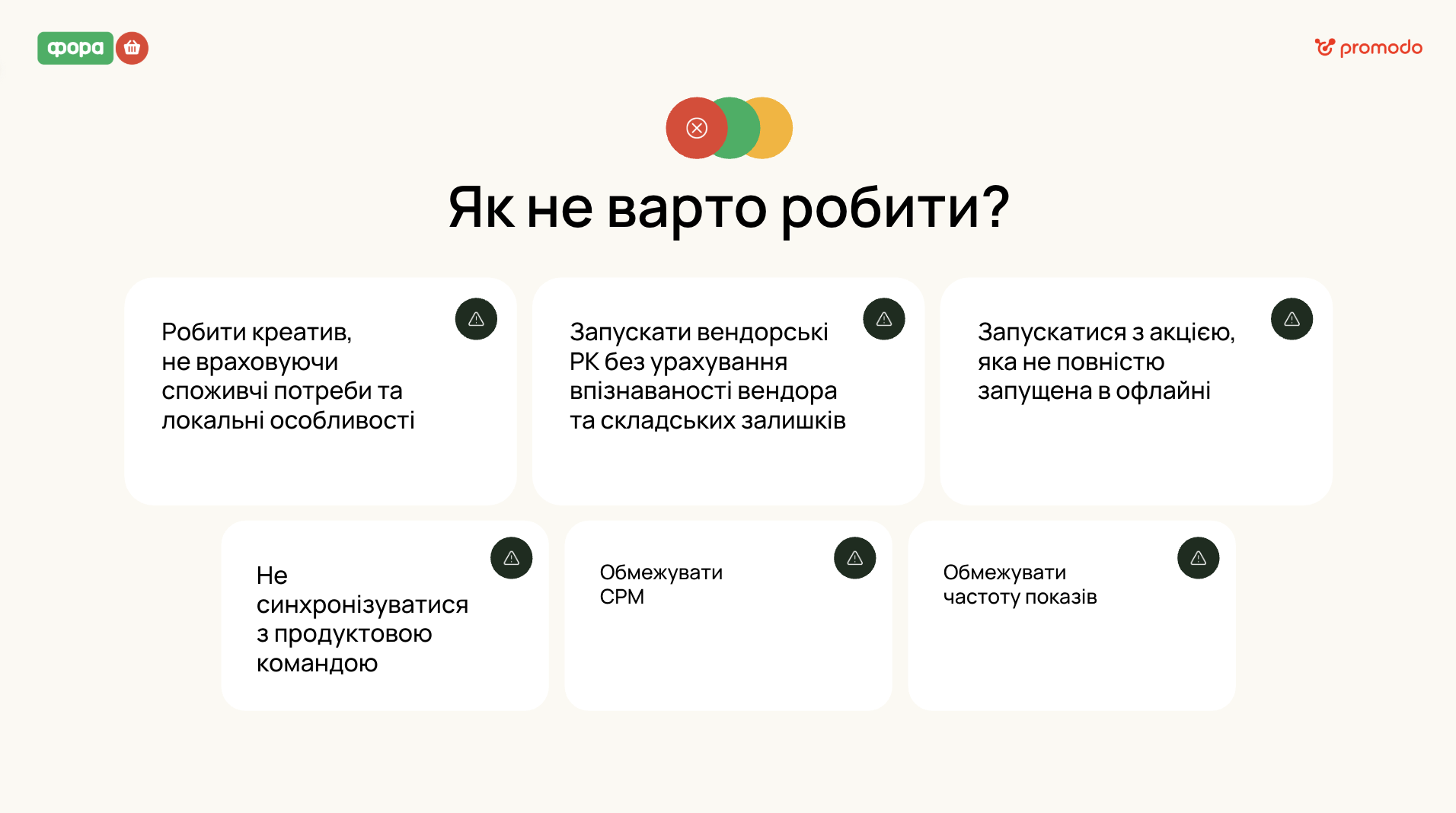 - Запуск медійних акцій, які не були повноцінно реалізовані в офлайні, що може призвести до негативних наслідків.