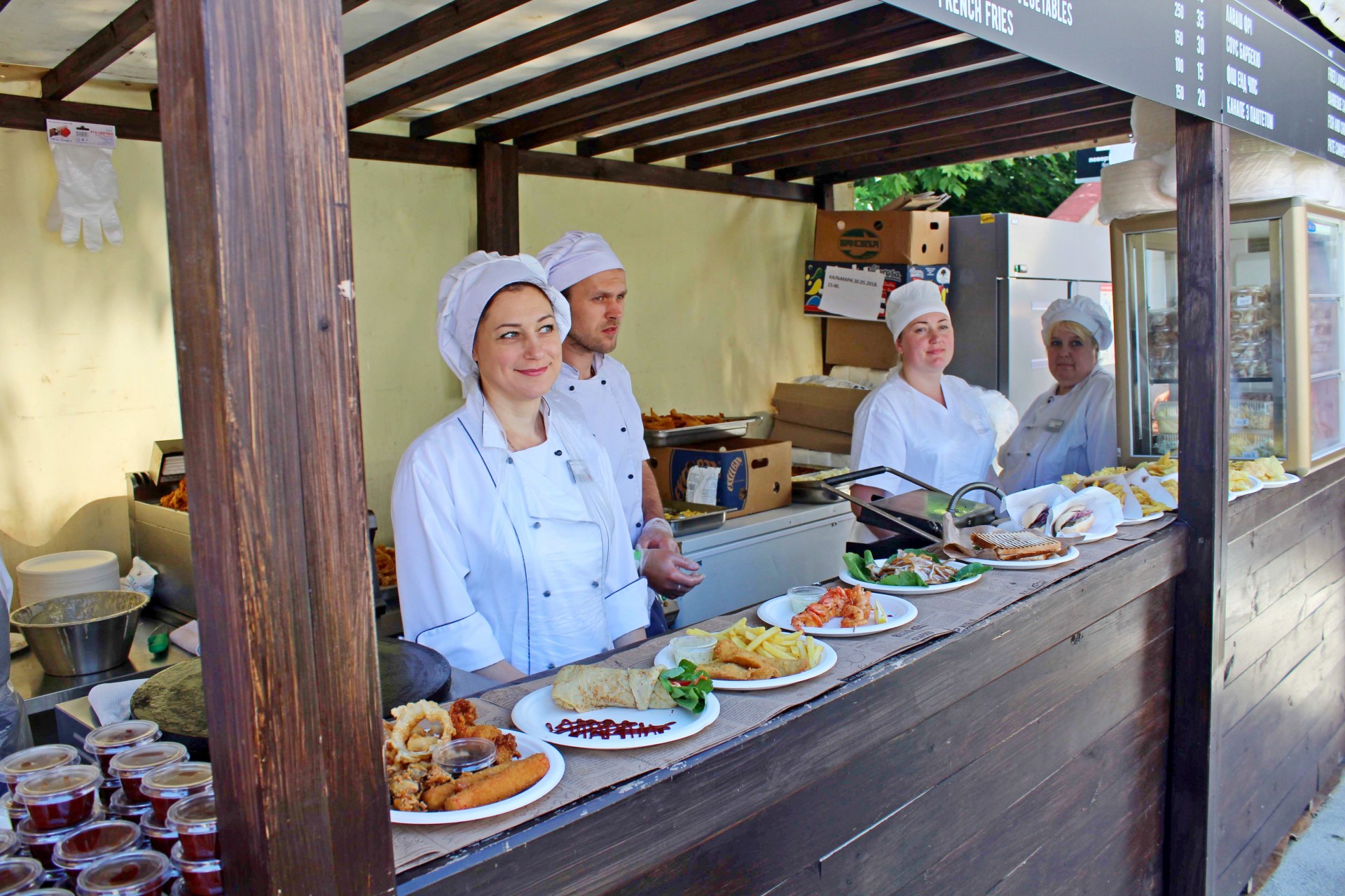Головними закусками тут були смажені на грилі свинячі реберця і устриці. Але цим асортимент не обмежився – всі охочі могли скуштувати м’ясний і рибний шашлик, хот-доги, бананові чіпси, смажену кукурудзу і багато іншого.