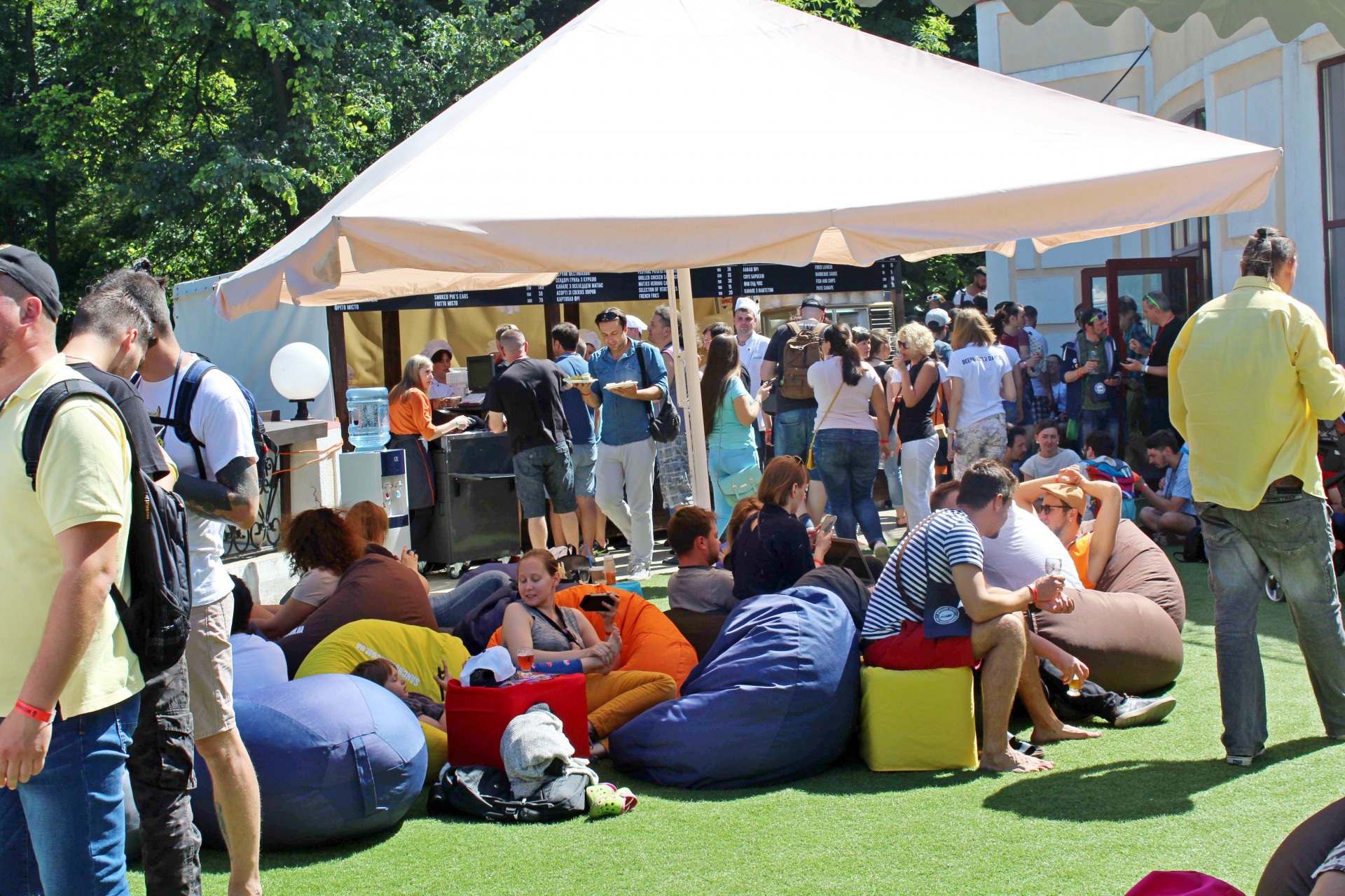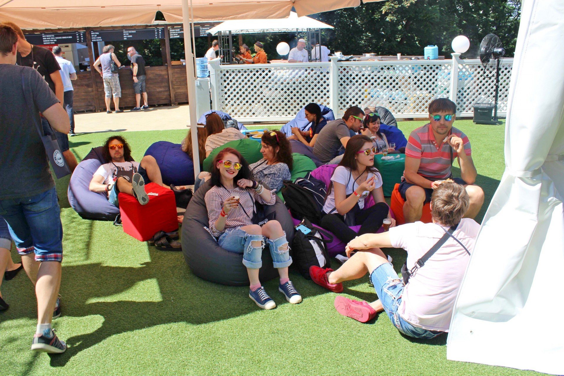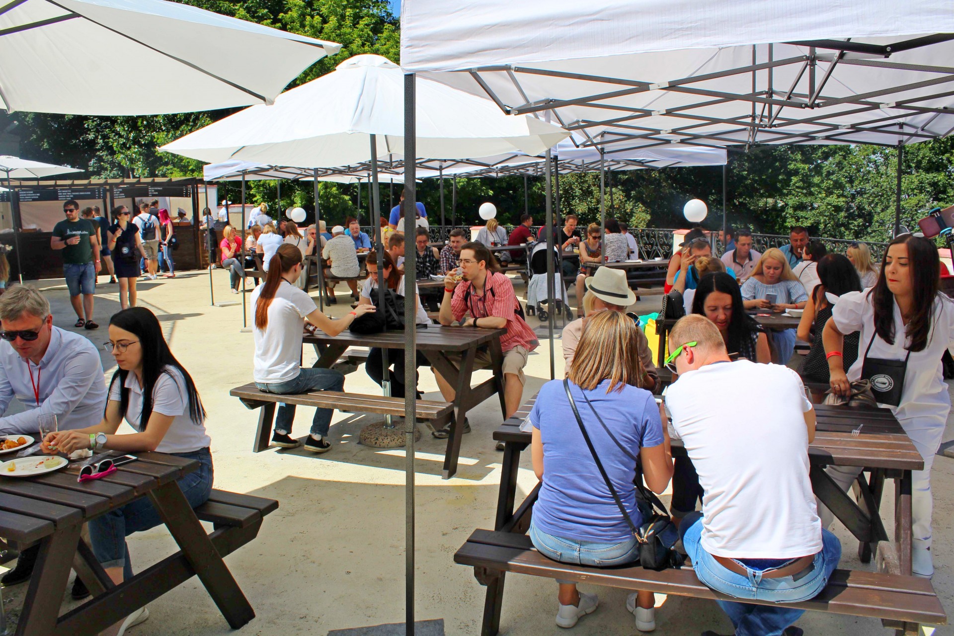 Частина гостей розмістилася на літніх майданчиках, на яких можна було знайти фуд-корт зі столиками і пуфиками.