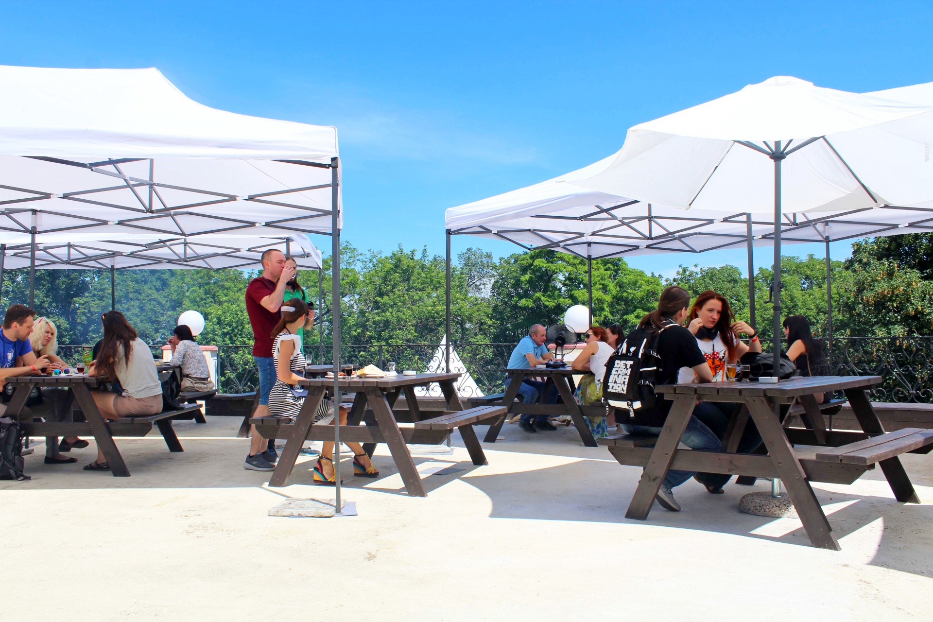 Частина гостей розмістилася на літніх майданчиках, на яких можна було знайти фуд-корт зі столиками і пуфиками.
