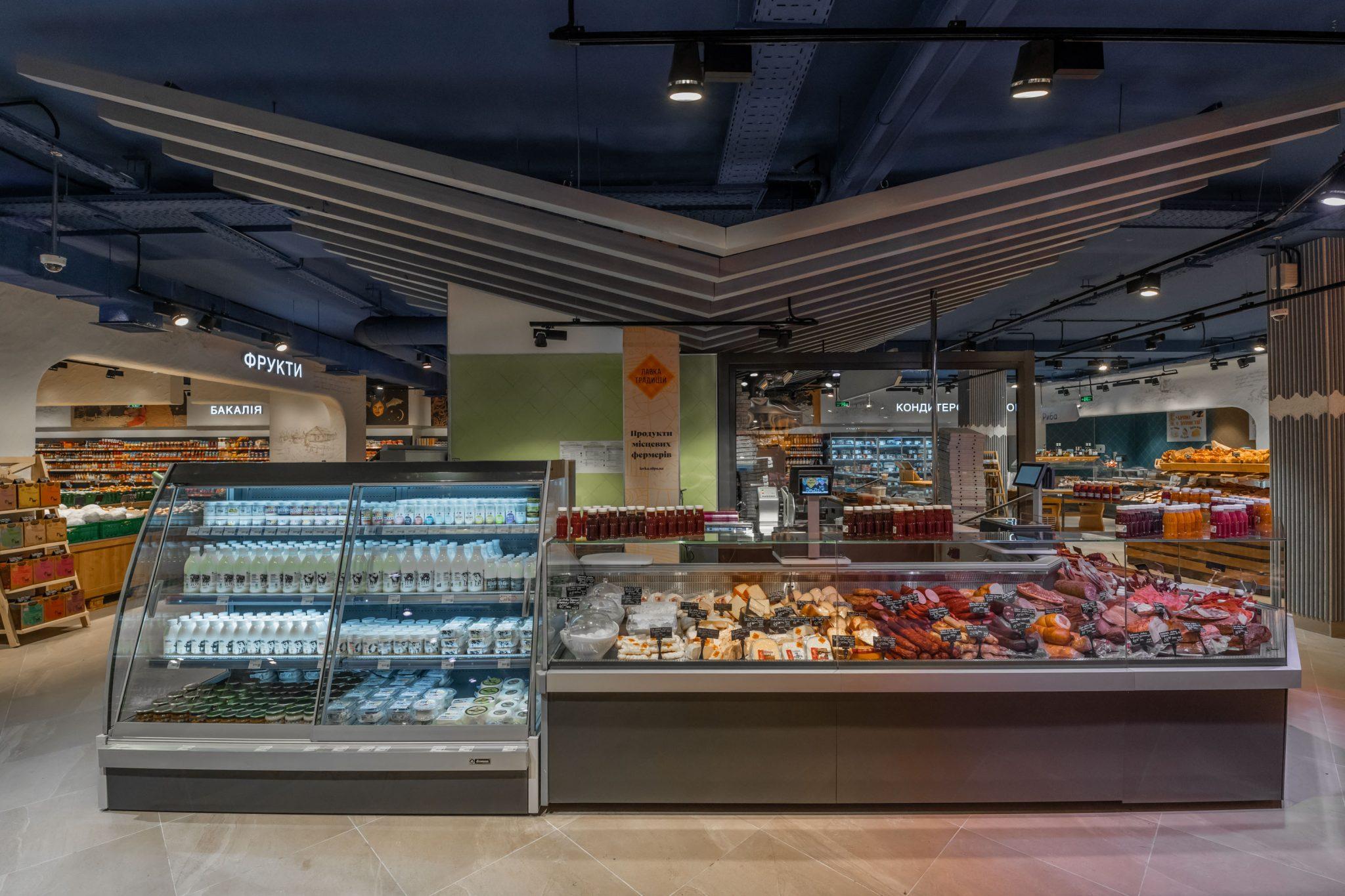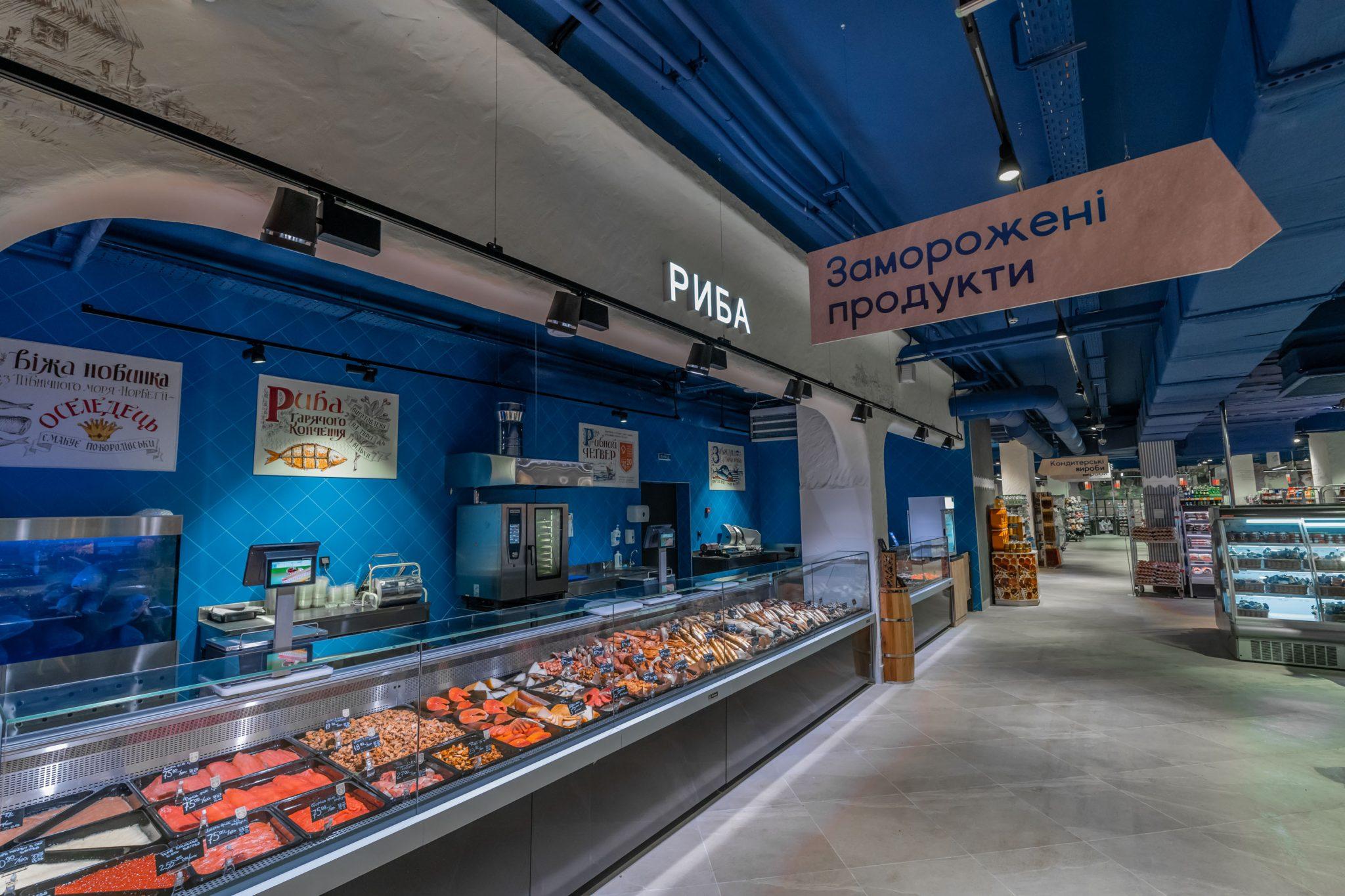 Причому від покупок панно на стінах не відволікають. Дизайн, як і торгове устаткування і традиційна для рітейлера обробка, виконані в єдиному стилі і колірній гамі і акцентують максимальну увагу на продуктах. Тут можна купити м’ясо на грилі, свіжу океанську, морську і річкову рибу, апетитну випічку, екзотичні фрукти і овочі, каву власного обсмаження і свіжоспечену піцу.