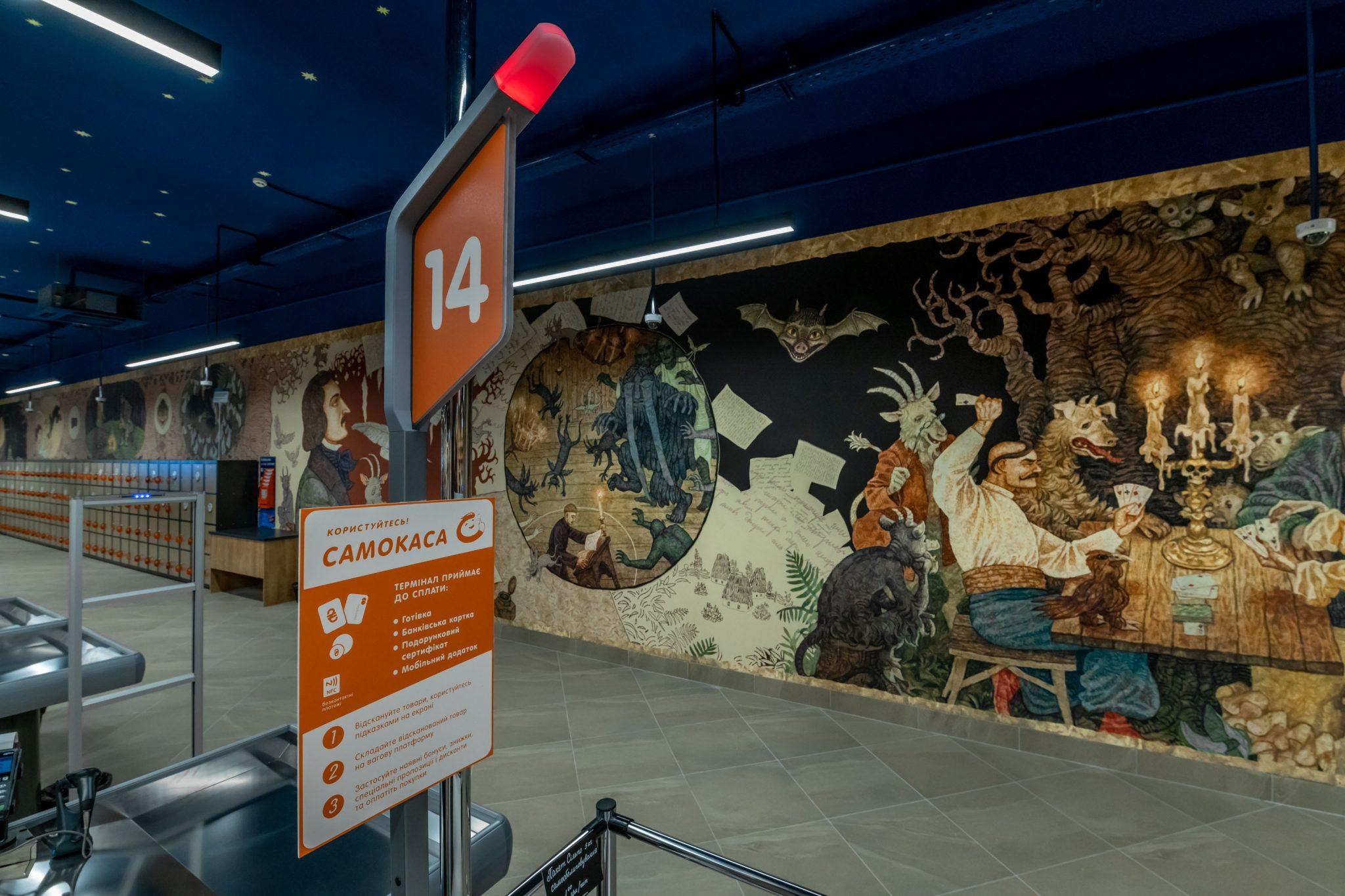Дизайн нового супермаркету широко використовує сюжети і образи з містичних творів Миколи Гоголя, оскільки письменник провів в Полтавській губернії дитячі та юнацькі роки. Його повісті й оповідання надихнули одного з лідерів українського продуктового роздробу оформити нову торгову точку, запровадивши в інтер’єр різні натяки і відсилання до знайомих з дитинства персонажів і легенд.