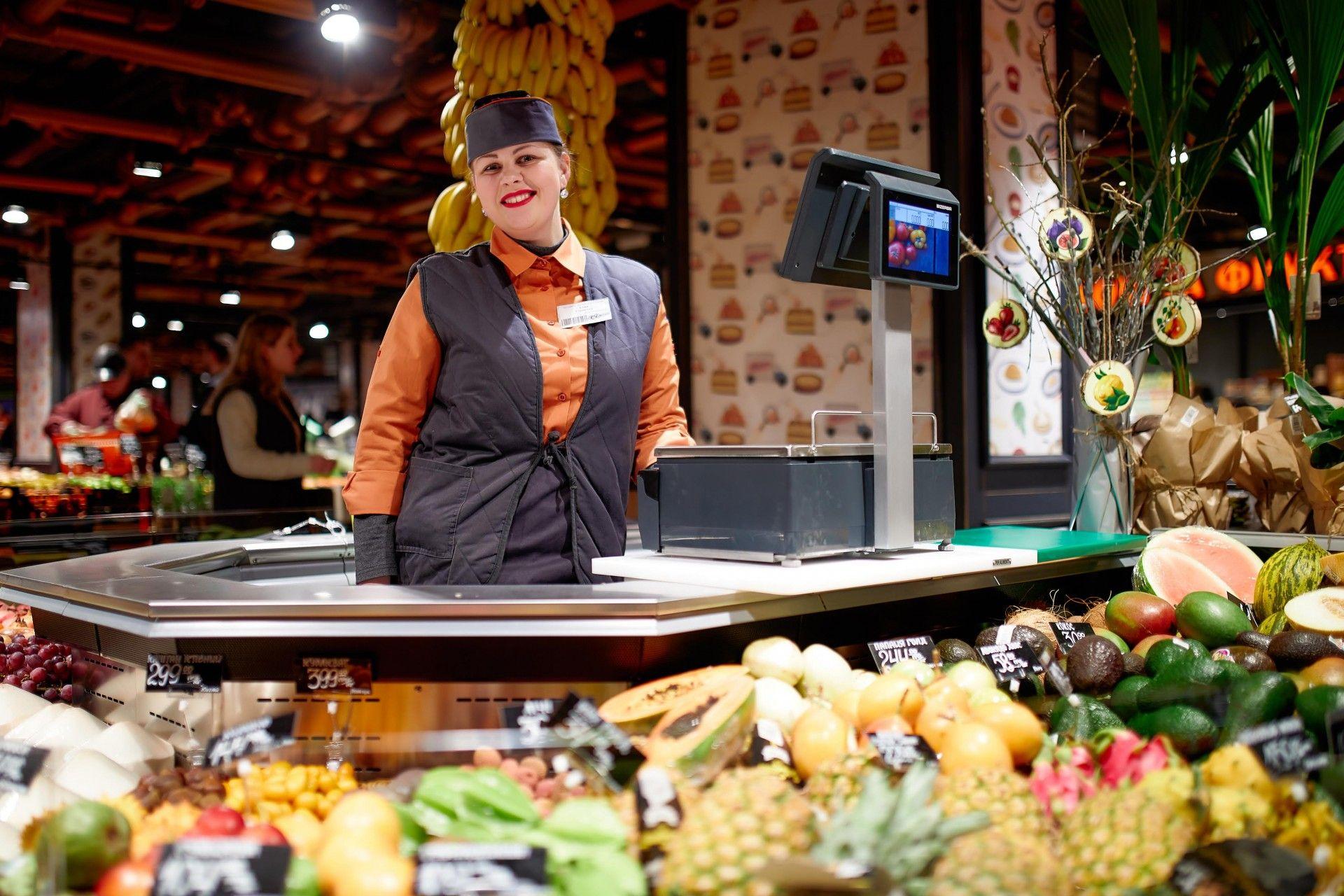 Обслуговує покупців 16 кас, у тому числі 6 терміналів самообслуговування і 2 каси у відділі кави та чаю.