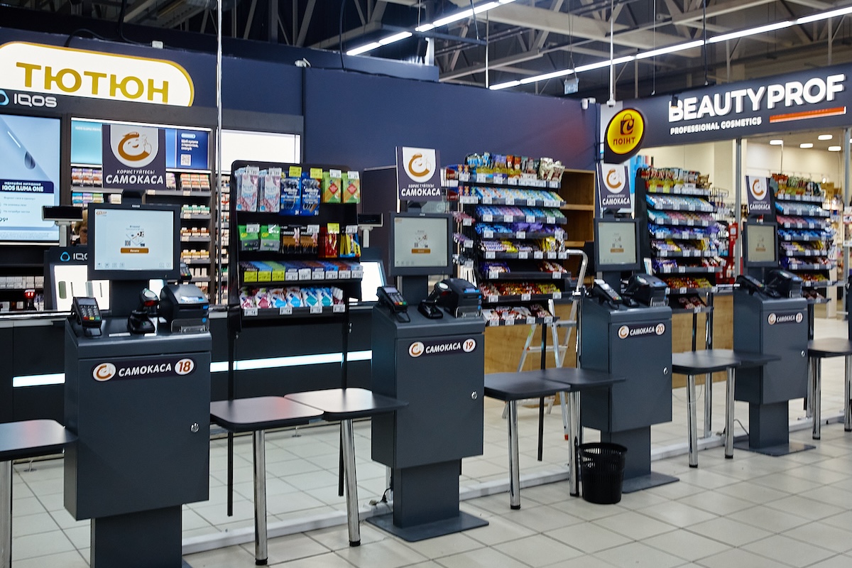 У супермаркеті в ТРК City Mall для зручності клієнтів мережі обслуговує 16 кас та 11 кас самообслуговування.