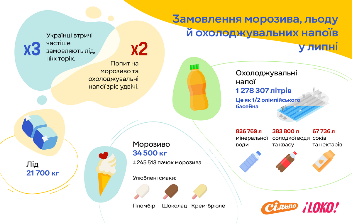 У липні цього року кур’єри Сільпо та Loko доставили 21,7 тонни льоду, 34,5 тонни морозива та 1 278 307 літрів охолоджувальних напоїв