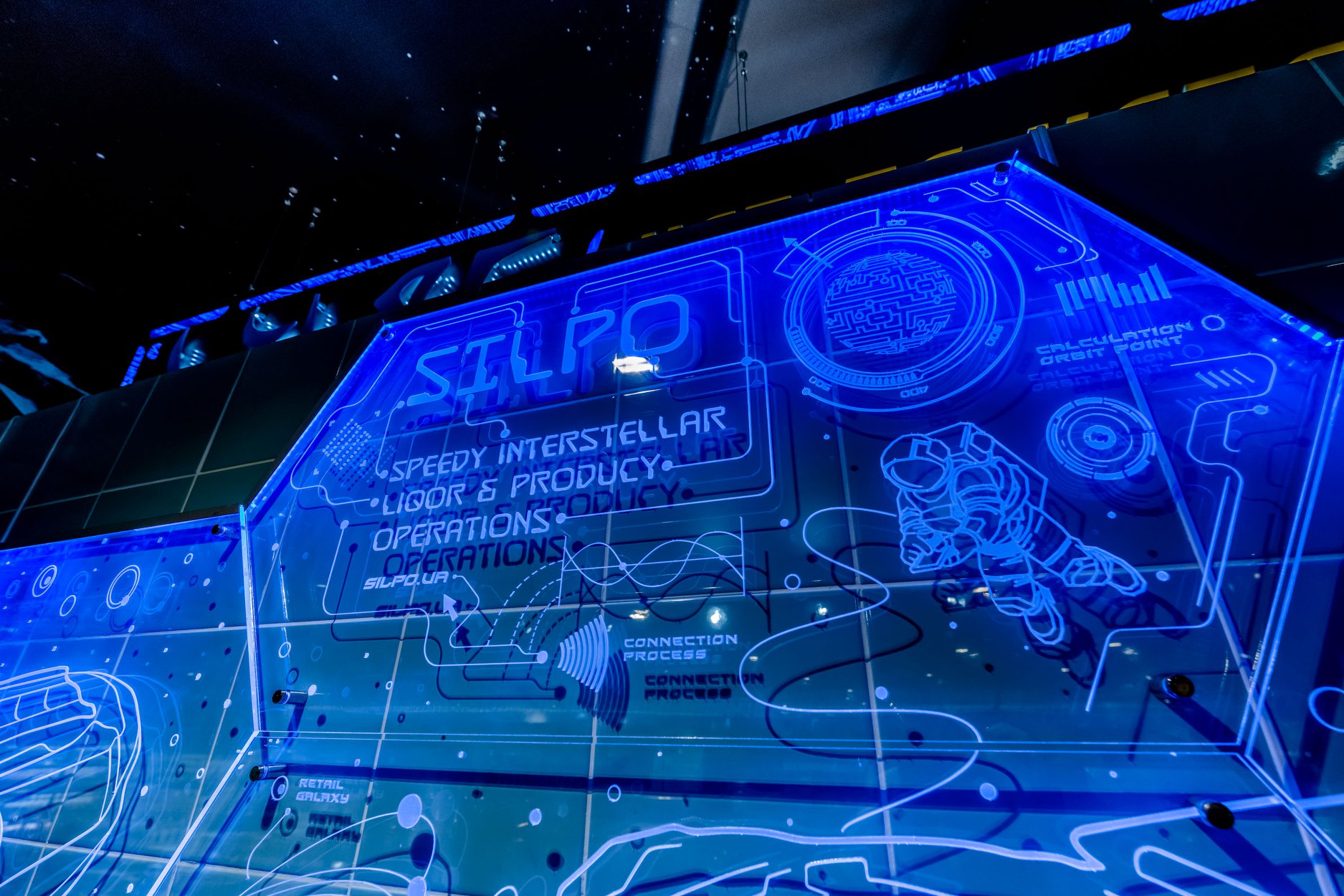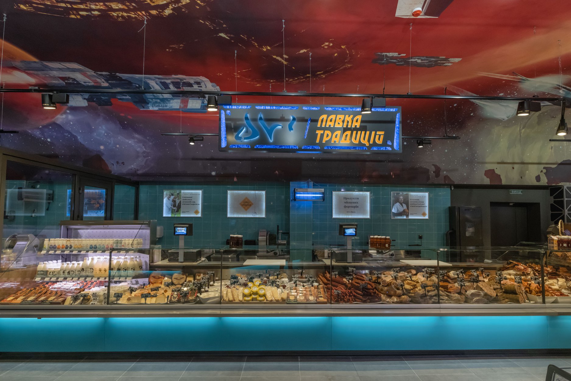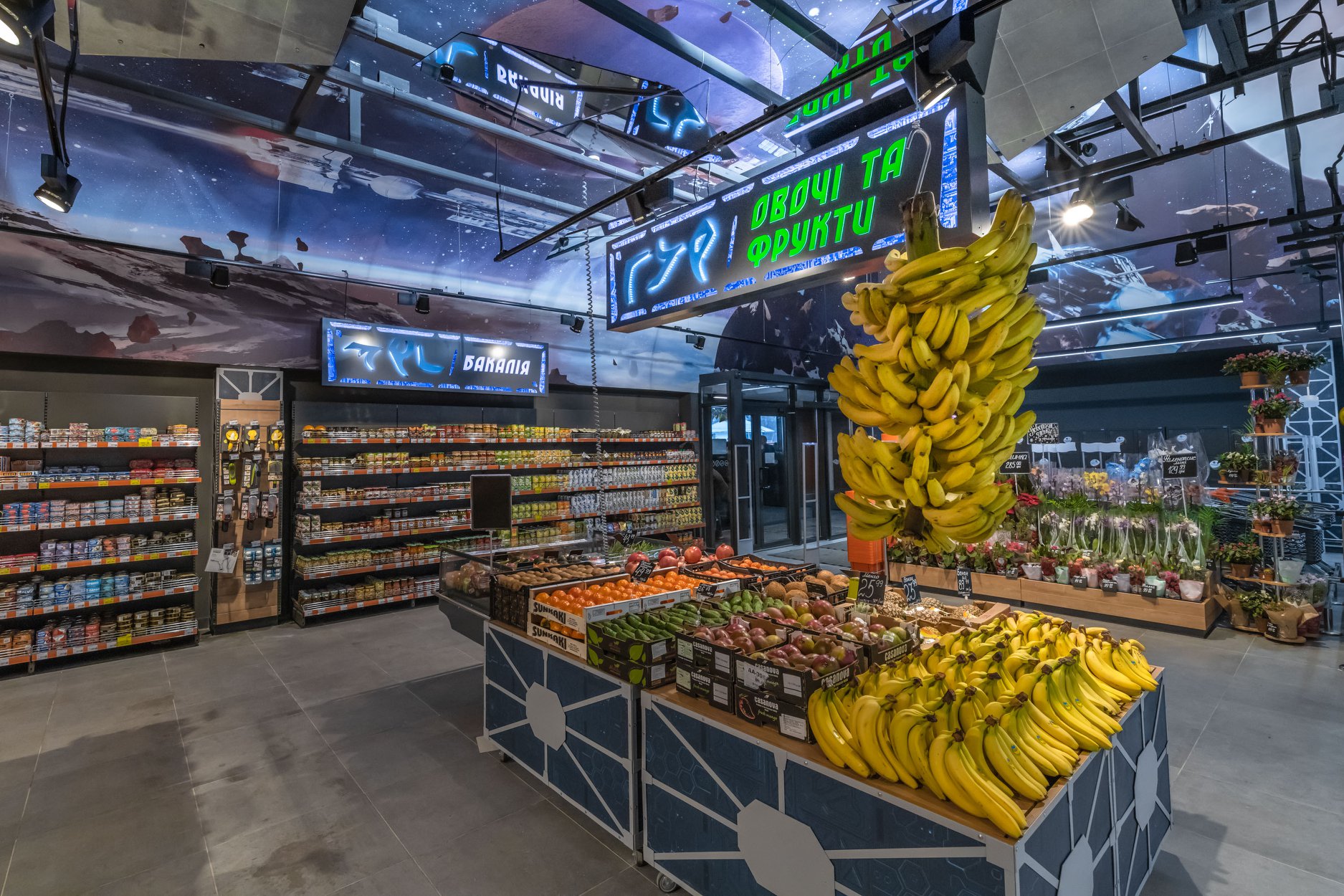 Новий магазин мережі Сільпо зайняв площу в 1170 кв. м та реалізований в космічному стилі. Як зазначили в прес-службі компанії, в магазині представлені відділи «орбітальної кулінарії, міжзоряної випічки та кондитерських виробів, “в основному земної” риби та м’яса, а також неземної гастрономії».