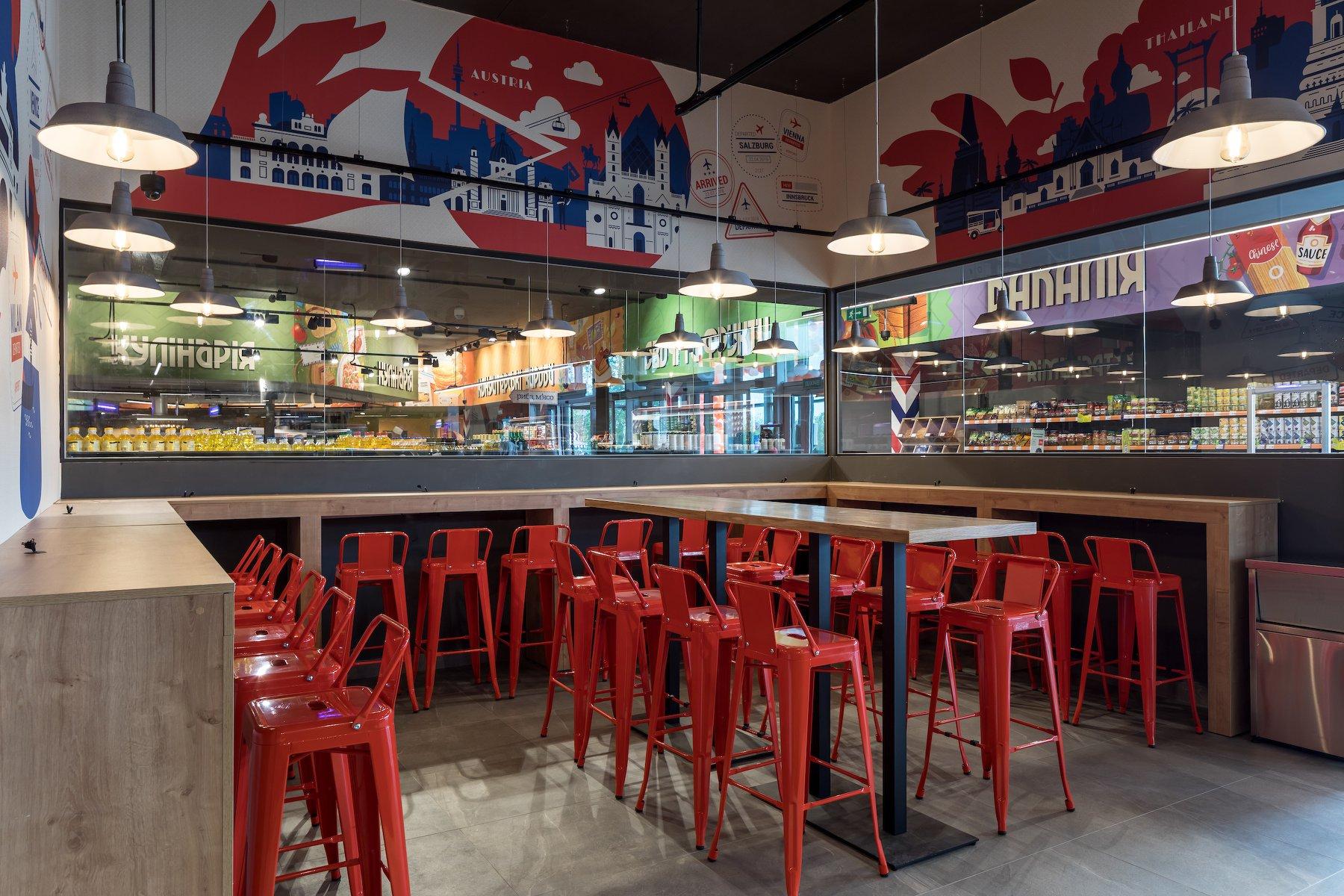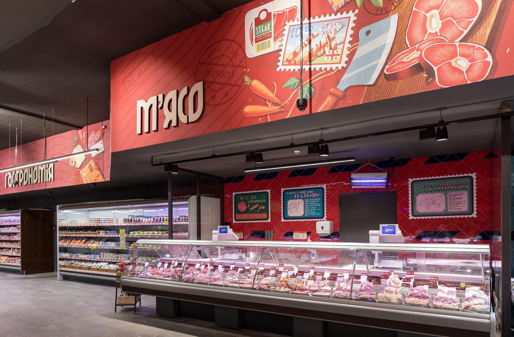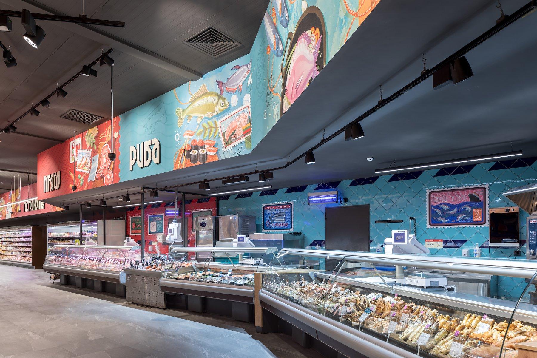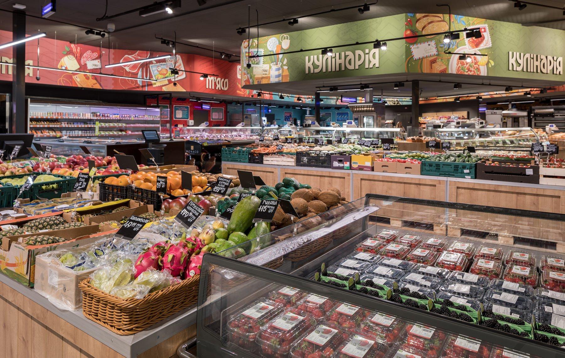 В асортименті супермаркету представлені солона і копчена риба, свіже м’ясо, хліб з печі, готові страви кулінарії та делікатеси з грилю, а клієнти можуть замовити собі каву, хот-дог або піцу. Також на території магазину працює аптека, а поруч з об’єктом обладнана стоянка для автомобілістів. Обслуговують покупців шість звичайних і п’ять кас самообслуговування.