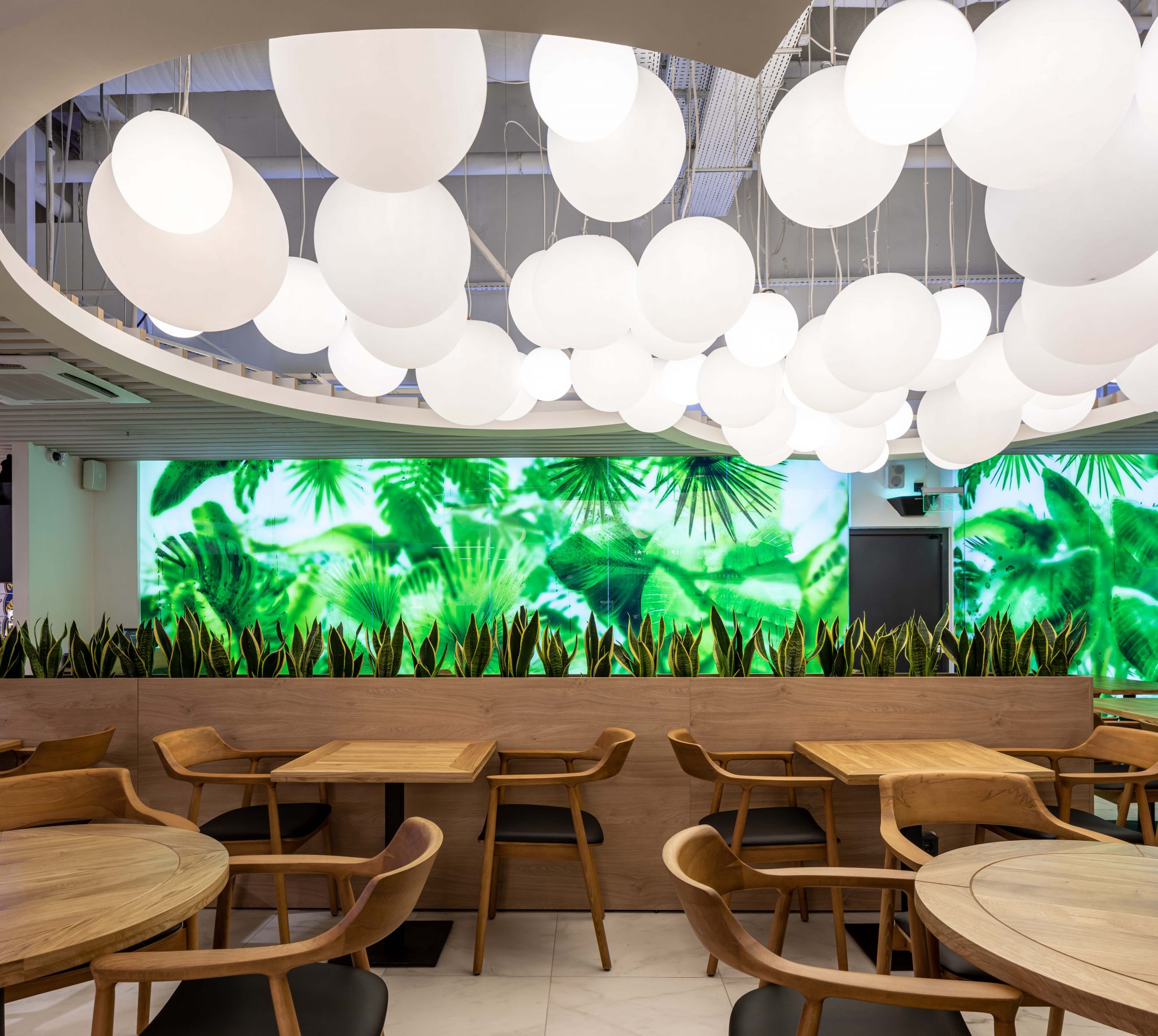 На Гостей чекає кав’ярня FEEL__trd із кавою власного обсмажування, а ще —цілий гастрономічний простір з професійними відкритими кухнями та високим сервісом — фудхол на чолі з бренд-шефом Марко Черветті. В одному місці можна вибрати одразу неаполітанську піцу з печі на дровах, класичні італійські салати та японські суші з-під ножа.