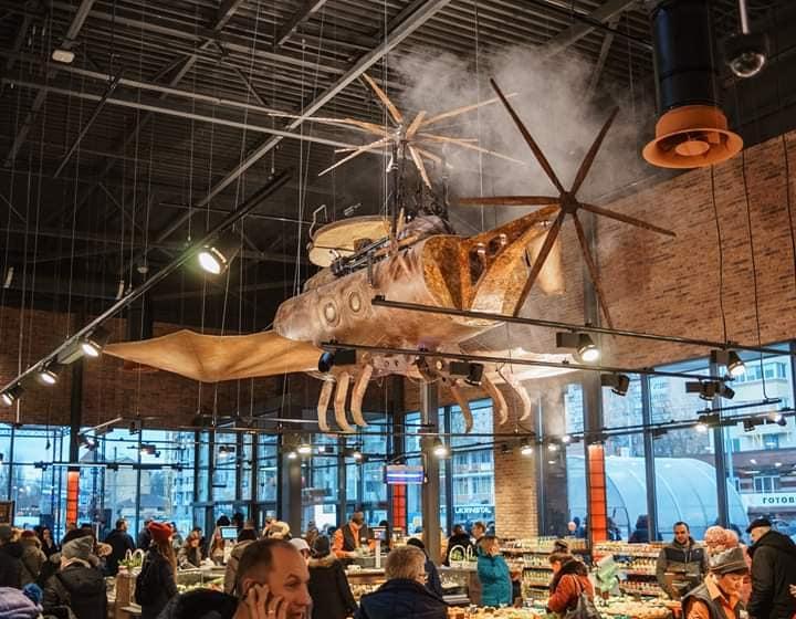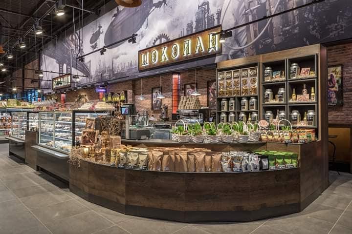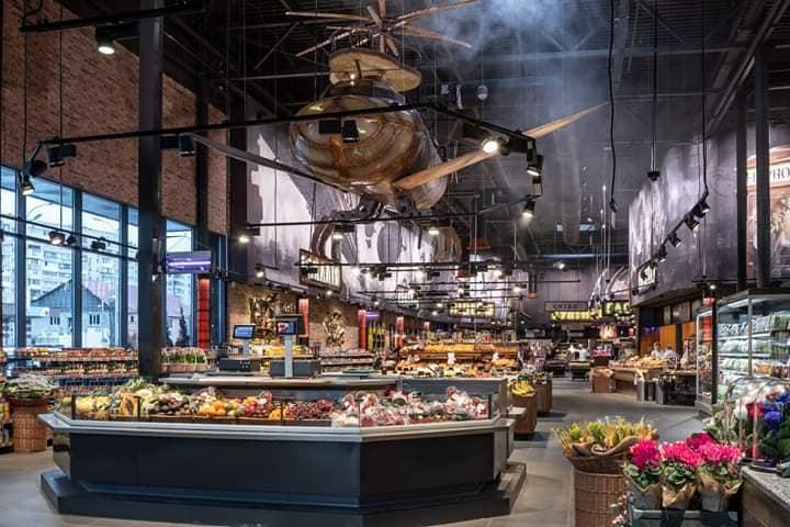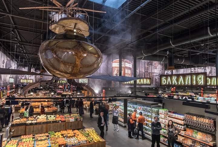 Торговий об’єкт займає площу майже 5000 кв. м та оформлений у стилі “стімпанк” – фантастичного жанру про світи, де парові машини та інші ретро-технології не зникли, а досягли найвищого розвитку.