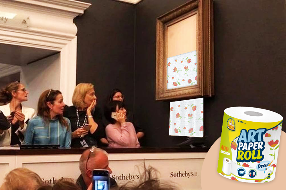Компанія Біосфера задалась питанням “різати чи не різати” туалетний папір, адже після розрізання роботи Бенксі її шматочки виросли в ціні вдвічі. Паралель вийшла сумнівна, але теж заслуговує бути відміченою.