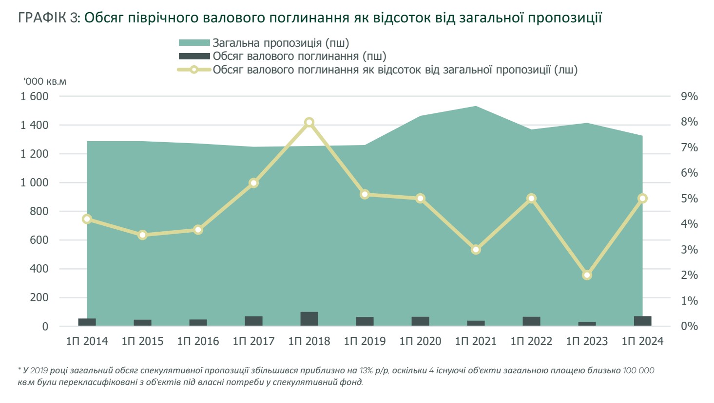 Як зазначається в останньому дослідженні ринку складської нерухомості Києва CBRE Ukraine, саме цей сегмент демонструє найбільшу стабільність та має високий потенціал для подальшого розвитку. Достатньо зазначити, що в січні-червні поточного року обсяг валового поглинання (загальна площа зданих в оренду і проданих приміщень) склав близько 85 000 кв. м, що втричі більше ніж у аналогічному періоді 2023-го. На відміну від попереднього року, коли попит був зумовлений переїздами бізнесу, цьогоріч на ринку домінували угоди з розширення в нових об’єктах та проєктах, що перебувають на стадії будівництва, на які припало 63% активності.
