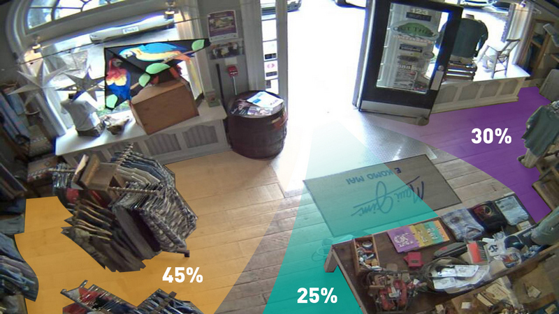 Проаналізувати шлях покупця по торговому майданчику, оцінити найбільш гарячі зони по трафіку, за часом зупинки і навіть по торканнях дозволяє софт від Prism Sky Labs. Софт підходить практично для будь-яких камер відеоспостереження, які встановлені в торговому залі. Система фіксує дані по трафіку та видає звіти у вигляді теплових карт двох типів. Перші показують: в яких зонах максимальний трафік, як рухаються клієнти, біля яких вітрин найбільше затримуються. До слова, прийнято вважати, що покупці частіше беруть з полиць товар по праву руку, проте численні дані клієнтів Prism показують якраз протилежне.