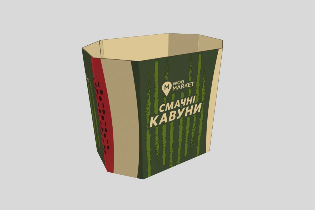 Як зазначає заступник директора департаменту гофропродукції та литої тари з продаж нових видів упаковки Київського картонно-паперового комбінату Андрій Ребро, в Європі й Америці, а віднедавна й в Україні для транспортування баштанних культур використовують октабіни – восьмигранні контейнери з вологостійкого гофрокатрону, що мають піддон розміром 1200 на 800 см та стінки заввишки 1000 см. Аграрії фіксують, що кожен бокс здатен вмістити до 1,5 тонн смугастих ягід.