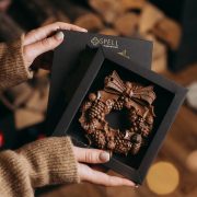 - різдвяний вінок з молочного шоколаду з цільними горіхами.