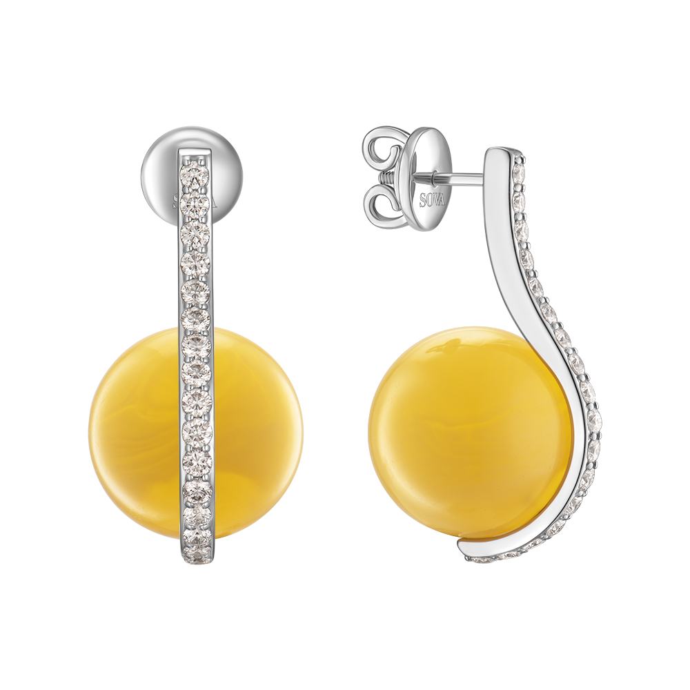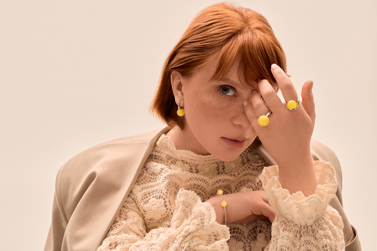 У новій колекції Terra ювелірний дім SOVA втілив прикраси з бурштином у сучасній естетиці. В основі колекції — сферичні намистини бурштину у теплому жовтому відтінку, обрамлені білим золотом та діамантами.