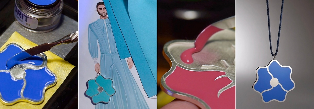 Прикраси виконані зі срібла та покриті емаллю яскравих кольорів — насиченого малинового, синього та ніжно-бірюзового, що продовжують палітру сценічних образів. Кожна прикраса — в індивідуальному кольорі, що підкреслює характер кожного з учасників.