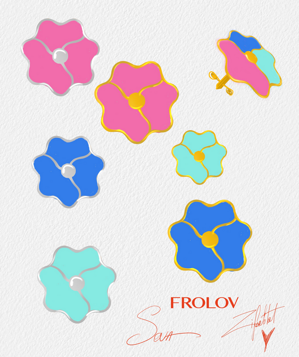 На звороті прикрас — гравіювання логотипів SOVA, Frolov і Ziferblat, як знак творчої єдності та унікальної колаборації: музики, дизайну та ювелірного мистецтва.