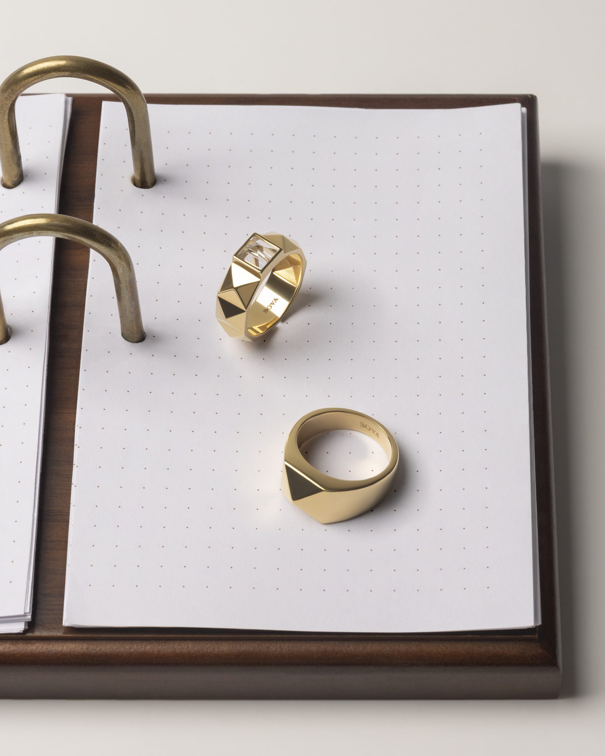 Ще один напрям колекції — панк-естетика: хрести, шипи, ланцюги та заклепки, що успадкували зухвалий, бунтарський дух нульових та дев’яностих. Серед прикрас — масивні підвіси-хрести на ланцюжках із срібних кульок, чокери, моносережки, персні-печатки, браслети, брошка, а також мінімалістичні сережки для багатошарової стилізації. У цій інтерпретації хрест стає знаком сили й перемоги.