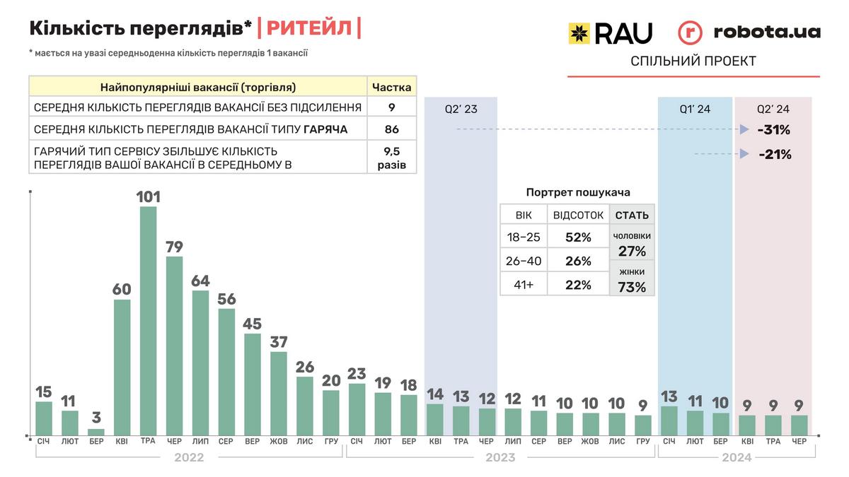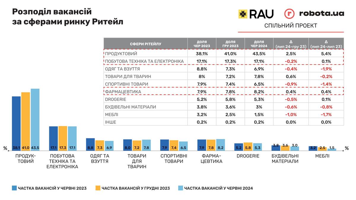 Спецпроект RAU і robota.ua: як змінився ринок праці в ритейлі з січня по червень 2024 року