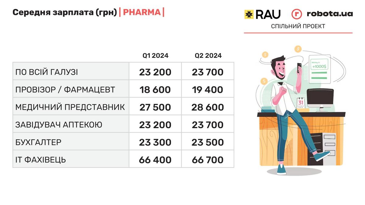 Натомість у фармсекторі краще платять, аніж в середньому по галузі ритейлу. Середні зарплати персоналу тут стартують з 19 000 грн і можуть сягати 66 000 грн, наприклад, для кваліфікованих айтівців. Тут також помітна тенденція до зростання оплати праці.