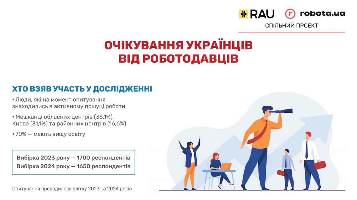 Чергове опитування, проведене серед 1650 респондентів, які знаходяться в активному пошуку роботи, показало, чого саме очікують українці від своїх роботодавців. Зазначимо, що це переважно люди із вищою освітою, які проживають або у столиці або у обласних центрах.