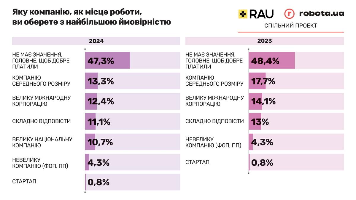 Практично незмінними виявилися критерії вибору компанії, в якій воліли би працювати українці.