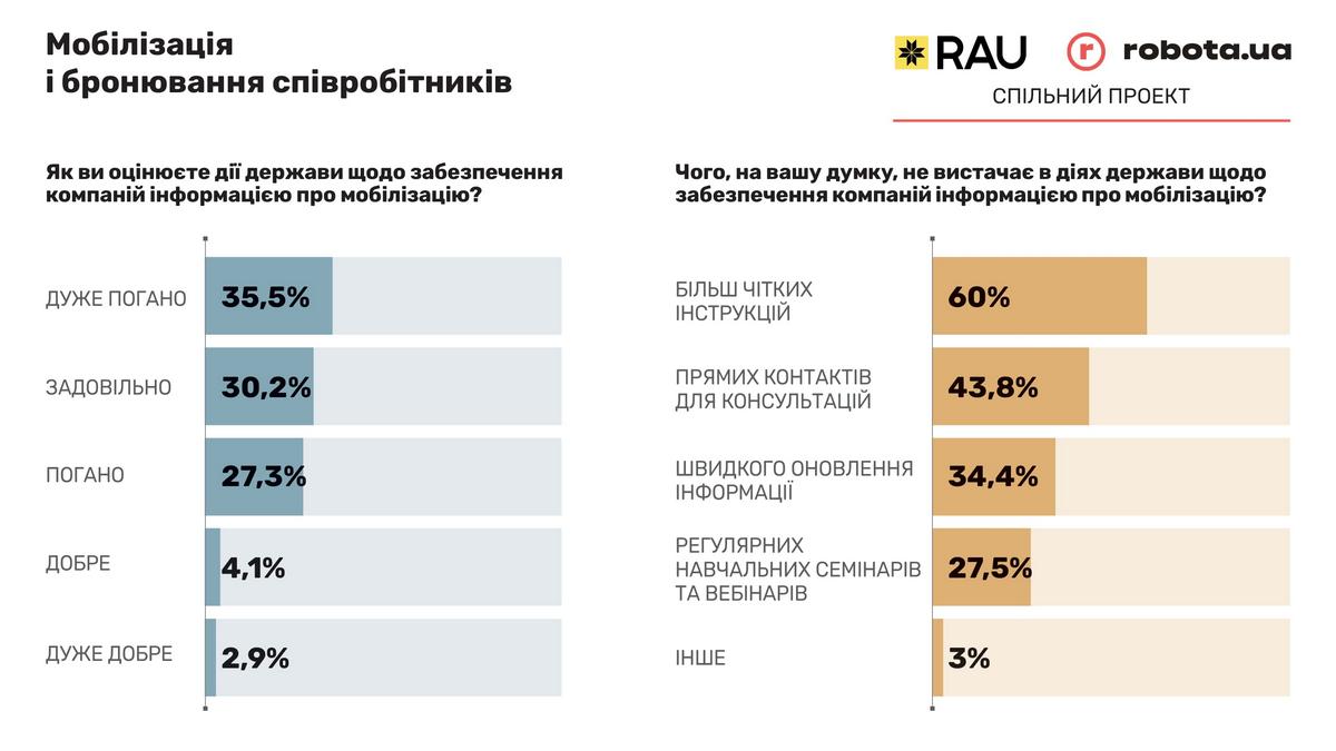 На жаль, опитані компанії відзначають погане інформування бізнесу про правила мобілізації і хочуть більше чітких інструкцій стосовно цього питання.