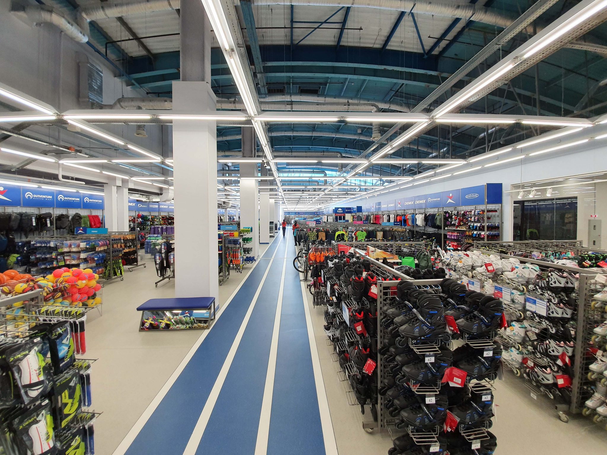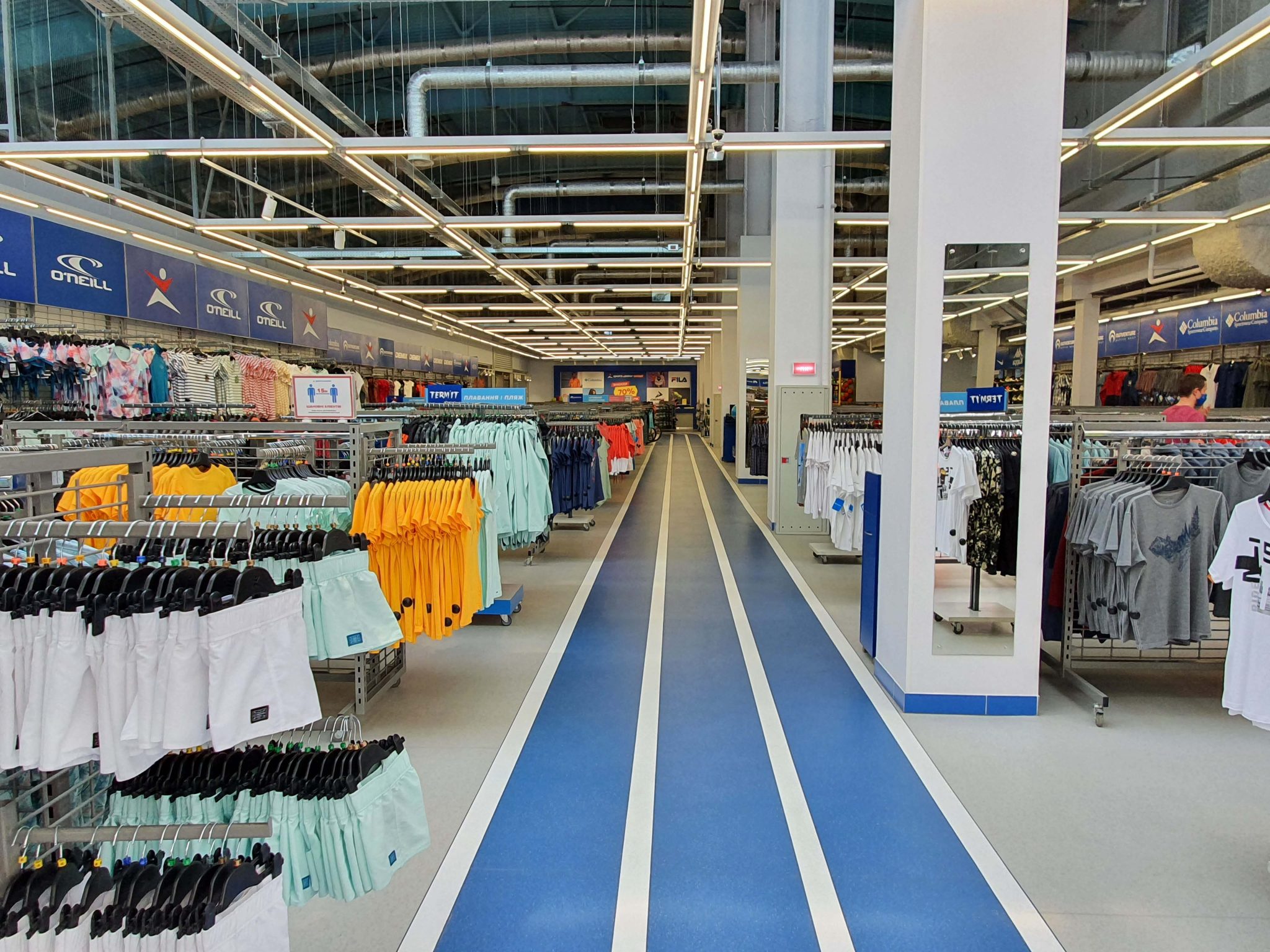 Після закриття аквапарку і редевелопменту площ, на третьому поверсі ТРЦ Dream Town неминуче мало відкритися щось цікаве. Ним став великий спортивний хаб, який включає в себе Sport Life нового формату і кілька спортивних гіпермаркетів. Серед них – магазин Sportmaster в дисконтному форматі. Варто відзначити, що це вже не перший стоковий об’єкт міжнародної мережі в Києві – з 2010 по 2014 року дисконтний магазин рітейлера працював на Петрівці в ТЦ Альта Центр. Через шість років формат нарешті повернувся до столиці.