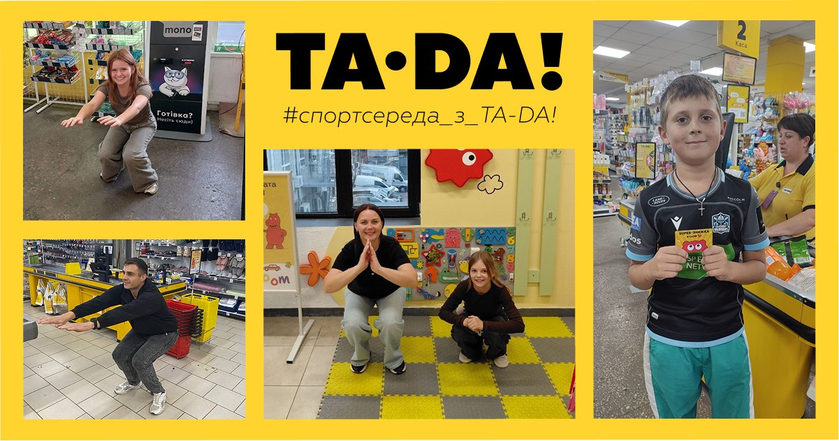 Цього тижня мережа супермаркетів TA-DA! запустила новий проєкт «Спортсереда з TA-DA!». У перший день старту до челенджу долучилися понад 500 людей по всій мережі. Головна ідея – показати кожному, що заняття спортом не вимагають великих зусиль, абонемента в зал чи ідеального моменту. Достатньо лише кількох хвилин на просту вправу, щоб зробити крок назустріч корисній звичці.