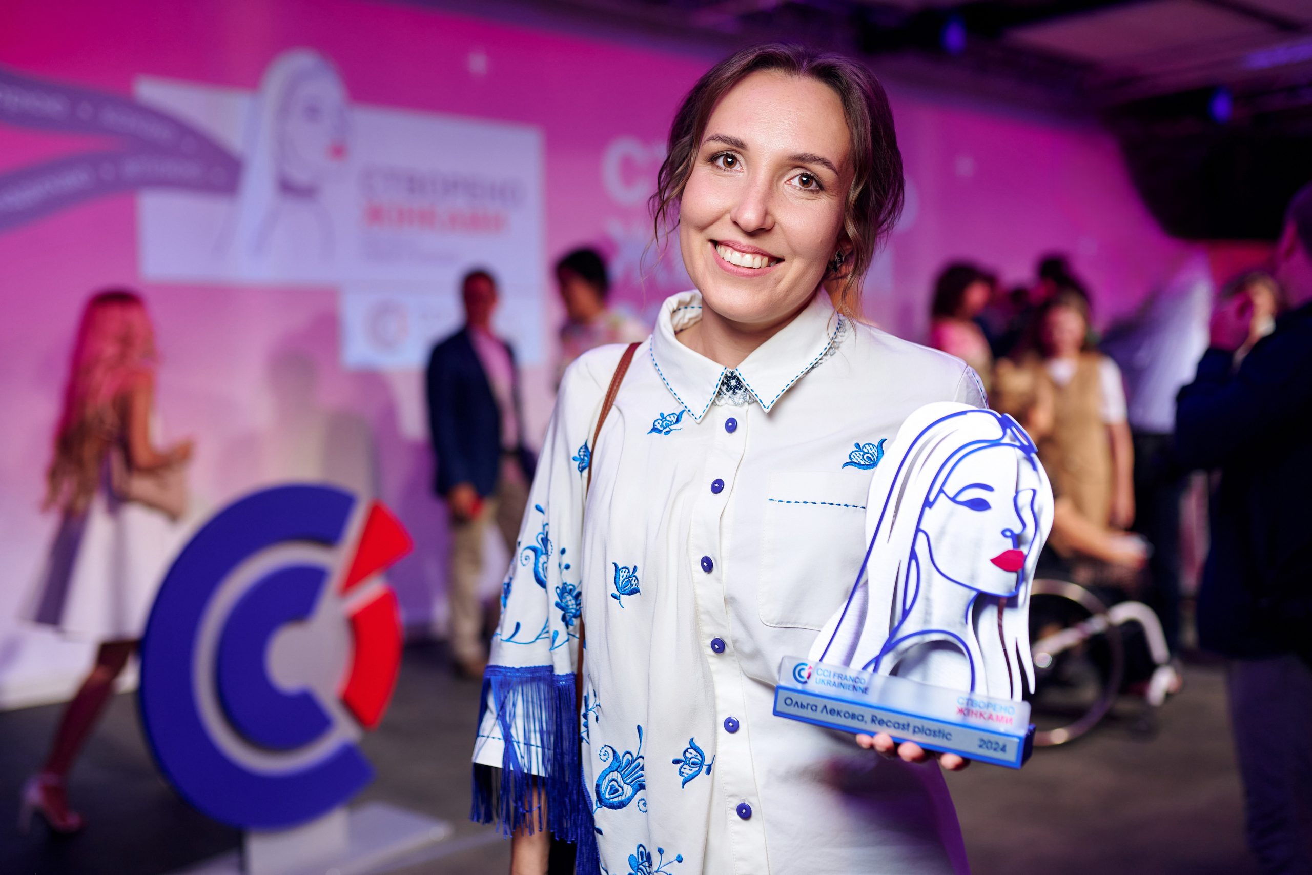 1 місце, поїздку в Париж та 150 тис. грн на розвиток бізнесу отримала Ольга Лекова, ARTSTUDIOLEO, з проєктом Recast plastic, який з переробленого пластику виробляє меблі для укриттів.