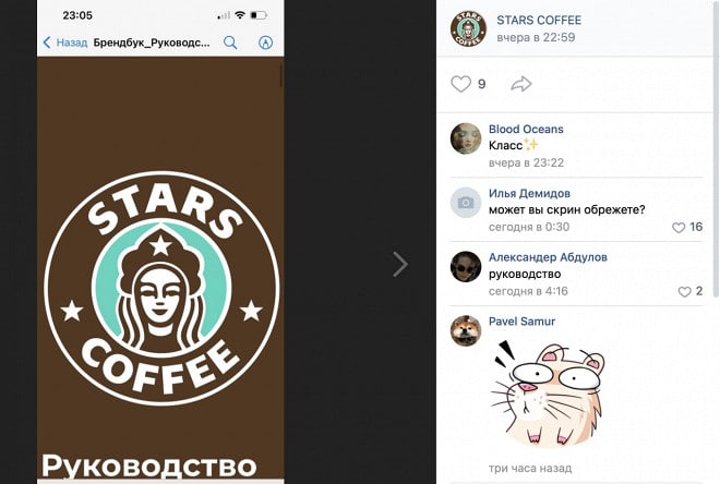 Ще до відкриття мережі кав’ярень користувачі помітили, що у «ВКонтакте» Stars Coffee на аватарку поставили необрізаний скрін з робочого чату. На зображенні над логотипом можна побачити напис “Брендбук Руководство”. Недбалість SMM-щиків швидко прибрали, проте інтернет усе пам’ятає.