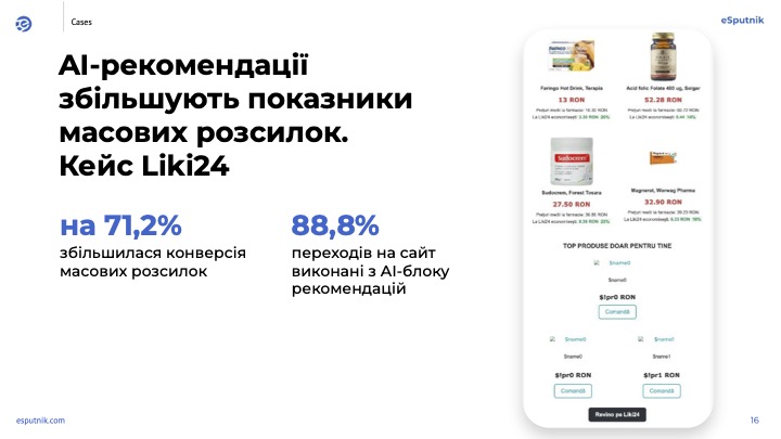 Цей інструмент також приніс гарні результати для платформи Liki24. Відповідно, у них на 72% збільшилася конверсія, а також на 88% зросла кількість переходів на сайт. Тобто це дійсно ефективний інструмент, але результат залежить від галузі, у якій працює ритейлер.